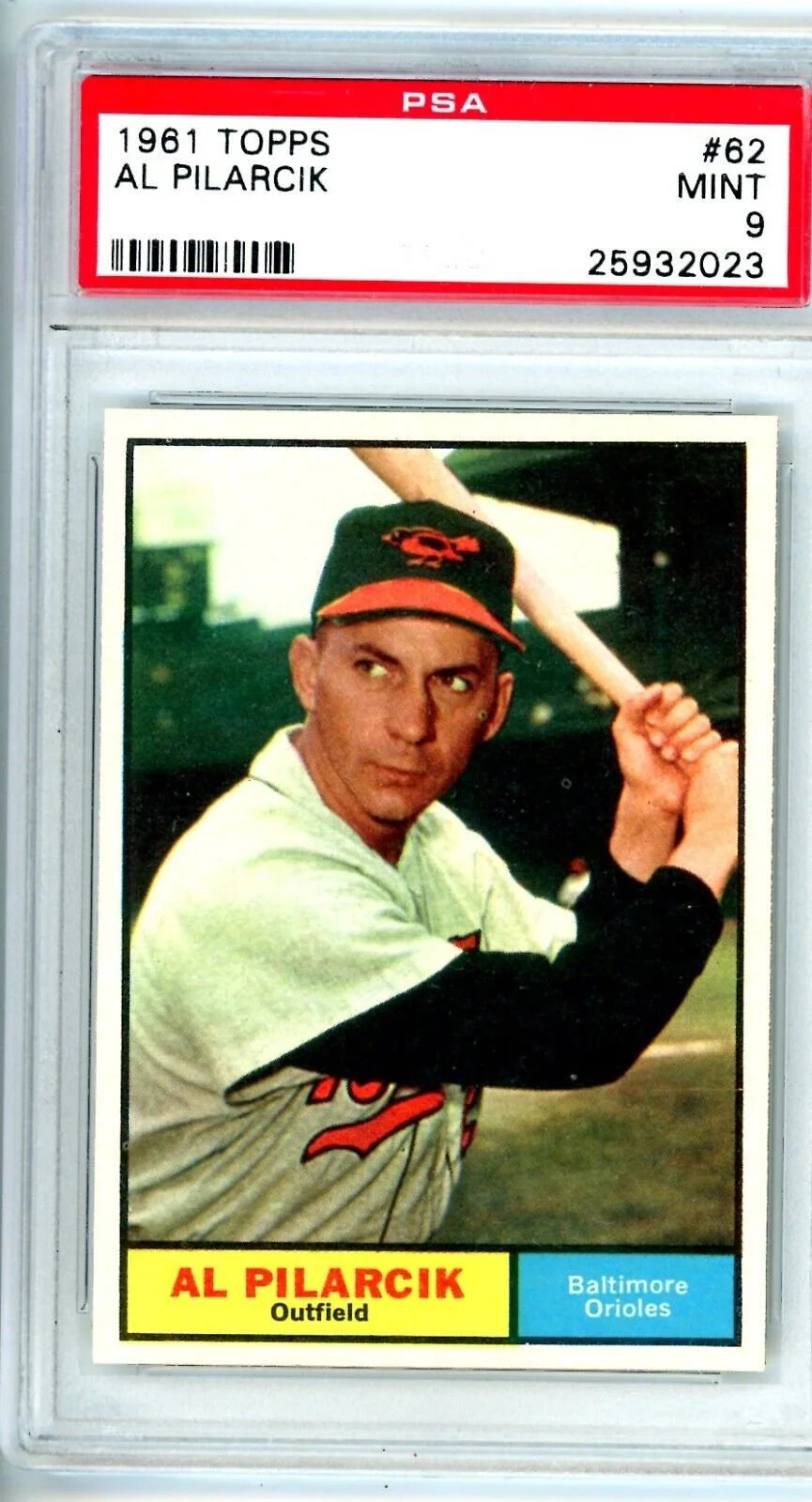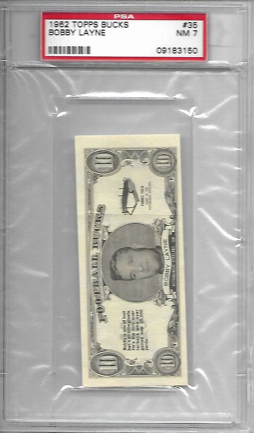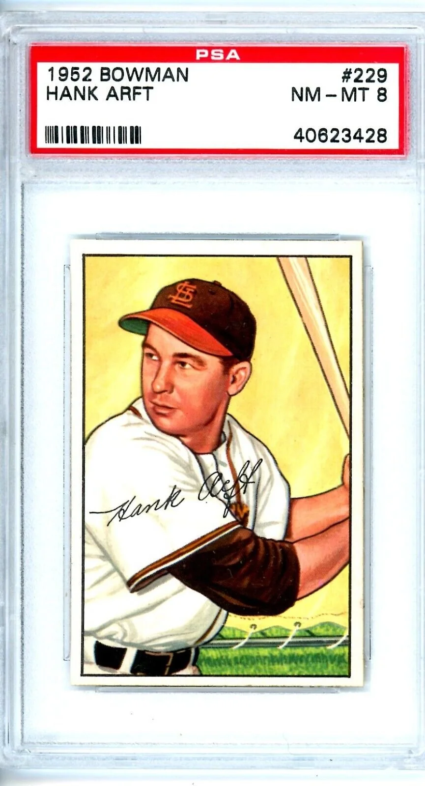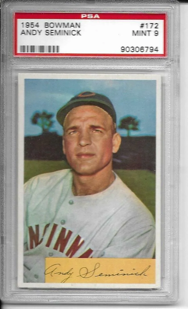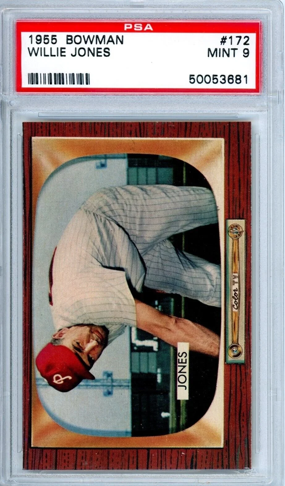 Buying PSA Graded Cards!!! Buying PSA Graded Cards!!! Buying PSA Graded Cards!!! 7% off all listed prices!!! (Discount applied at checkout) 1967 Topps Ed Bressoud #121 PSA 10 Mets 7444 $1,077.00 1977 Topps Blues Team 85 PSA 10 POP 4 Blues 7227 $116.62 1964 Topps Gino Cimilo 26 PSA 10 POP 2 A's 7883 $2,450.00 1955 Bowman Willie Jones 172 PSA 9 Phillies $400.00 1955 Topps Ted Williams 2 PSA 6 Red Sox 11383 $1,469.00 T206 Sovereign 350 Miller Huggins Hands at Mouth PSA 6 Cincinnati 12320 $2,490.00 1950 Bowman Clyde Vollmer 53 SGC 88 Senators 529 $120.00 1966 Topps Wes Westrum 341 PSA 9 Mets 15144 $249.00 1954 Bowman Ransom Jackson 189 PSA 8 Cubs 11008 $53.00 1911 T3 Cy Young PSA 1 #42 Indians Checklist Back 12654 $3,983.00 1964 Topps Lou Clinton 526 PSA 9 Red Sox $124.00 1954 T219 Red Man Indian Chiefs Red Cloud #11 PSA 8 Set Break $147.00 1935 Canada Candy Confectionary Movie Stars PSA 5.5 Highest Grade Tyrone Power $149.00 1971 Topps Hank Aaron 400 PSA 8 Braves 11363 $1,910.00 1954 Topps Willie Jones #41 PSA 8.5 Phillies 12834 $400.00 1962 Topps Bucks Layne 35 PSA 7 5219 $43.00 1973 OPC Lynn McGlothlen 114 PSA 10 Red Sox POP 1 $490.00 1964 Philadelphia Sam Baker #127 Eagles PSA 9 12399 $72.00 1964 Philadelphia Rip Hawkins 103 PSA 9 Vikings 9854 $49.00 1964 Topps Don Landrum 286 PSA 10 POP 2 Cubs 8001 $2,450.00 1953 Topps Eddie Mathews #37 PSA 8 Braves $1,698.00 1954 T219 Red Man Indian Chiefs Arkikita #20 PSA 8 Set Break $122.50 1963 Topps Johnny Klippstein 571 PSA 9 Phillies 2441 $96.00 1935 Canada Candy Confectionary Movie Stars PSA 4.5 Highest Grade Edward Arnold $149.00 1954 Topps Bob Trice 148 PSA 8.5 Cardinals 12828 $398.00 1964 Topps Venezuela Yogi Berra #21 PSA 5 Yankees 14331 $979.00 1940 Lone Ranger Smugglers' Love 39 PSA 8 Lone Ranger 13005 $600.00 T206 Piedmont 350-460/25 Christy Mathewson Dark Cap PSA 2 NY Nat 10579 $2,128.00 1964 Topps Glen Hobbie 578 PSA 9 Cubs 12915 $124.00 1966 Topps Ken McMullen 401 PSA 9 Senators 9694 $58.00 1961 Topps Ed Keegan #248 PSA 10 A's 12560 $2,940.00 1966 Topps Bill Bryan 332 PSA 9 A's 15149 $400.00 1962 Topps Bobby Conrad 141 PSA 8 Cardinals 3874 $125.44 1948 Bowman Helena Carter 19 PSA 8.5 7451 $169.00 1935 Canada Candy Confectionary Movie Stars PSA 6.5 Highest Grade Buck Jones $495.00 1950 Bowman Wally Westlake #69 Pirates PSA 8.5 11538 $392.00 1966 Topps Chris Zachary 313 PSA 9 Astros 13073 $200.00 1965 Topps Astros Rookies Joe Morgan 16 PSA 9 Astros $5,290.00 1955 Bowman Pete Suder 6 PSA 8.5 A's $600.00 1957 Topps Ed Fitzgerald 367 PSA 8 Senators 1399 $43.00 1965 Philadephia Clarence Peaks 151 PSA 9 14228 Steelers $99.00 1964 Philadelphia Tommy Mason #105 Vikings PSA 9 12396 $72.00 1965 Topps NL Rookies Perez 581 PSA 9 Reds 10125 $3,136.00 1963 Topps CFL White 57 PSA 9 Rough Riders 3882 $52.00 1949 Bowman Barney McCosky 203 PSA 8 Browns 518 $144.06 1962 Topps Hank Aaron 320 PSA 8 Braves 11282 $5,380.00 1964 Philadelphia Forest Gregg #73 Packers PSA 9 12416 $119.00 1973 Topps Ray Newman 568 PSA 10 Brewers 5004 $490.00 1975 Topps Cello Pack Ruthven/L.Foster PSA 10 12902 $1,568.00 1966 Topps Floyd Weaver 231 PSA 9 Indians 14322 $150.00 1952 Bowman Small Emlen Tunnell #39 PSA 8 Giants 10553 $588.00 1957 Topps Jack Meyer 162 PSA 8 Phillies 1313 $42.00 1959 Indian Trading Card Eskimo on Seal Hunt Left 70 PSA 10 14068 $124.00 1964 Philadelphia King Hill #134 Eagles PSA 9 12404 $73.00 1954 T219 Red Man Indian Chiefs John Grass #21 PSA 9 Set Break $490.00 1955 Bowman Ernie Banks 242 PSA 8 Cubs 11630 $11,166.00 1966 Topps Joe Pepitone #79 PSA 9 Yankees 12456 $587.00 1941 Double Play Hassett / Moore PSA 8.5#121 / 122 Braves 10930 $588.00 1965 Philadephia Tony Lorick 6 PSA 9 14199 Colts $200.00 1954 Topps Eddie Stanky #38 PSA 9 Cardinals 11514 $2,842.00 1965 Topps Charlie Long #13 PSA 8 Boston $100.00 1954 Bowman Harry Perkowski 44 PSA 8 Reds 752 $46.00 1954 T219 Red Man Indian Chiefs Lean Wolf #32 PSA 9 Set Break $490.00 1954 Bowman Don Lund 87 PSA 8 Tigers 783 $50.00 1966 Topps Jerry Buchek 454 PSA 9 Cardinals 12104 $71.00 1974 Topps Marty Perez 374 PSA 10 Braves 8416 $292.00 1957 Topps Win Wilfong #65 PSA 8 Hawks 12628 $727.00 1954 Bowman Frank Smith 188 PSA 8 Reds 11009 $53.00 1965 Topps Embossed Koufax 8 PSA 8 Dodgers 10126 $441.00 1966 Topps Don Schwall #144 PSA 9 Pirates 12305 $239.00 1964 Philadelphia St Louis Cardinals Play Card #182 PSA 9 $100.00 1952 Bowman Yogi Berra #1 PSA 6 Yankees $998.00 1966 Topps Pete Richert 95 PSA 9 Senators 15151 $225.00 1950 Bowman Ed Lopat #215 PSA 8 Yankees 10713 $220.50 1967 Topps W.K. Hicks #50 PSA 10 Oilers 12020 $945.95 1964 Phili Darrell Dess 116 PSA 9 Giants 3930 $49.00 1964 Philadelphia Washington Redskins Play Card #196 PSA 9 12421 $122.50 1972 Topps Vince Colbert 84 PSA 10 Indians 9744 $392.00 1967 Philadephia Joe Morrison 116 PSA 8 Giants 14115 $19.00 1962 Topps Indians Team 537 PSA 8 Indians 2269 $46.00 1964 Topps Pete Ward 85 PSA 9 White Sox 12274 $394.00 1966 Topps Hal Lanier 271 PSA 9 Giants 15090 $200.00 1963 Salada Maury Wills 20 PSA 9 5819 $56.00 1964 Philadelphia Ernie Green 35 PSA 8 Browns 12347 $291.00 1961 Topps Orlando Cepeda #435 PSA 8 Giants $100.00 1955 Bowman Randy Jackson 87 PSA 9 Cubs $400.00 Jasper Bratt Bobble Head (2) $24.00 1965 Topps Bernie Allen #237 PSA 9 Twins 11570 $169.00 1966 Topps Turk Farrell 377 PSA 9 Astros $57.00 1966 Topps Checklist 265-352 Player's Cap Red 279 PSA 9 Checklist 15103 $300.00 1964 Topps Set Break (8.92 avg) PSA 8 #52 Chuck Hiinton Senators $63.00 1932 Orbit Gum Kiki Cuyler 6 PSA 8 4659 $155.82 1963 Topps Johnny Logan #259 PSA 9 Pirates 12054 $490.00 1961 Topps Willie Jones PSA 9 #497 Reds 10741 $490.00 1963 Salada Jim Bunning 33 PSA 9 4726 $58.00 1965 Philadephia Fred Cox 104 PSA 9 14218 Vikings $198.00 1964 Topps Ken Aspromonte 252 PSA 10 Cubs 11256 $1,385.00 1966 Topps Buster Narum 274 PSA 9 Senators 15102 $200.00 1961 Fleer Al Jamison 173 PSA 9 Oilers 3803 $47.00 1957 Topps Hit Stars Peir Angeli 79 PSA 9 $899.00 1965 Topps Johnny Robinson 109 PSA 8