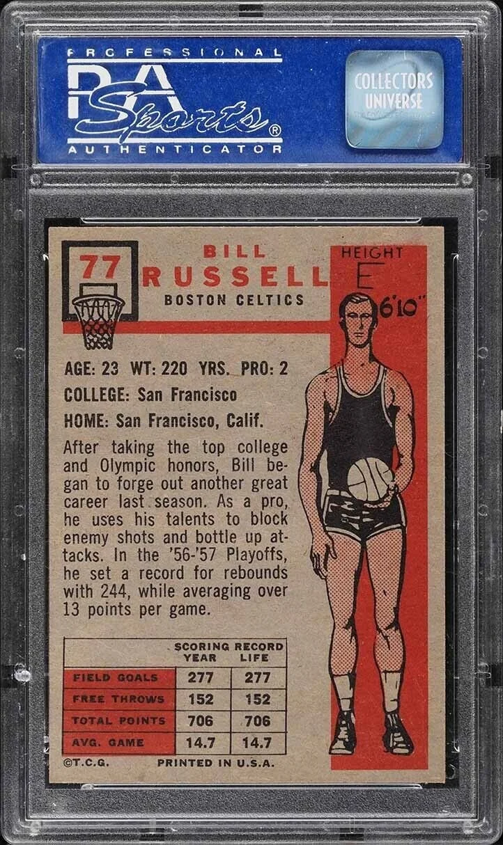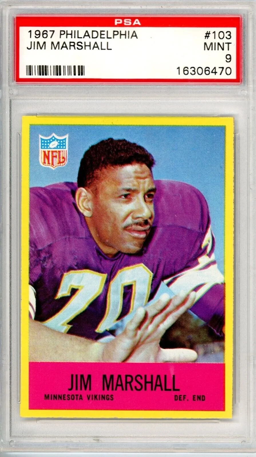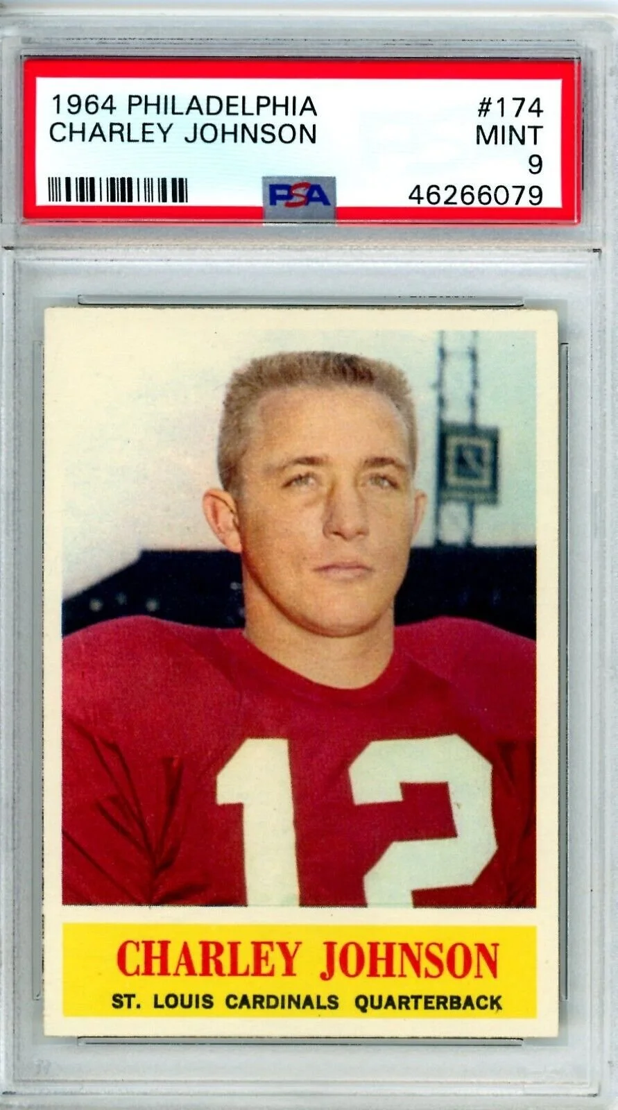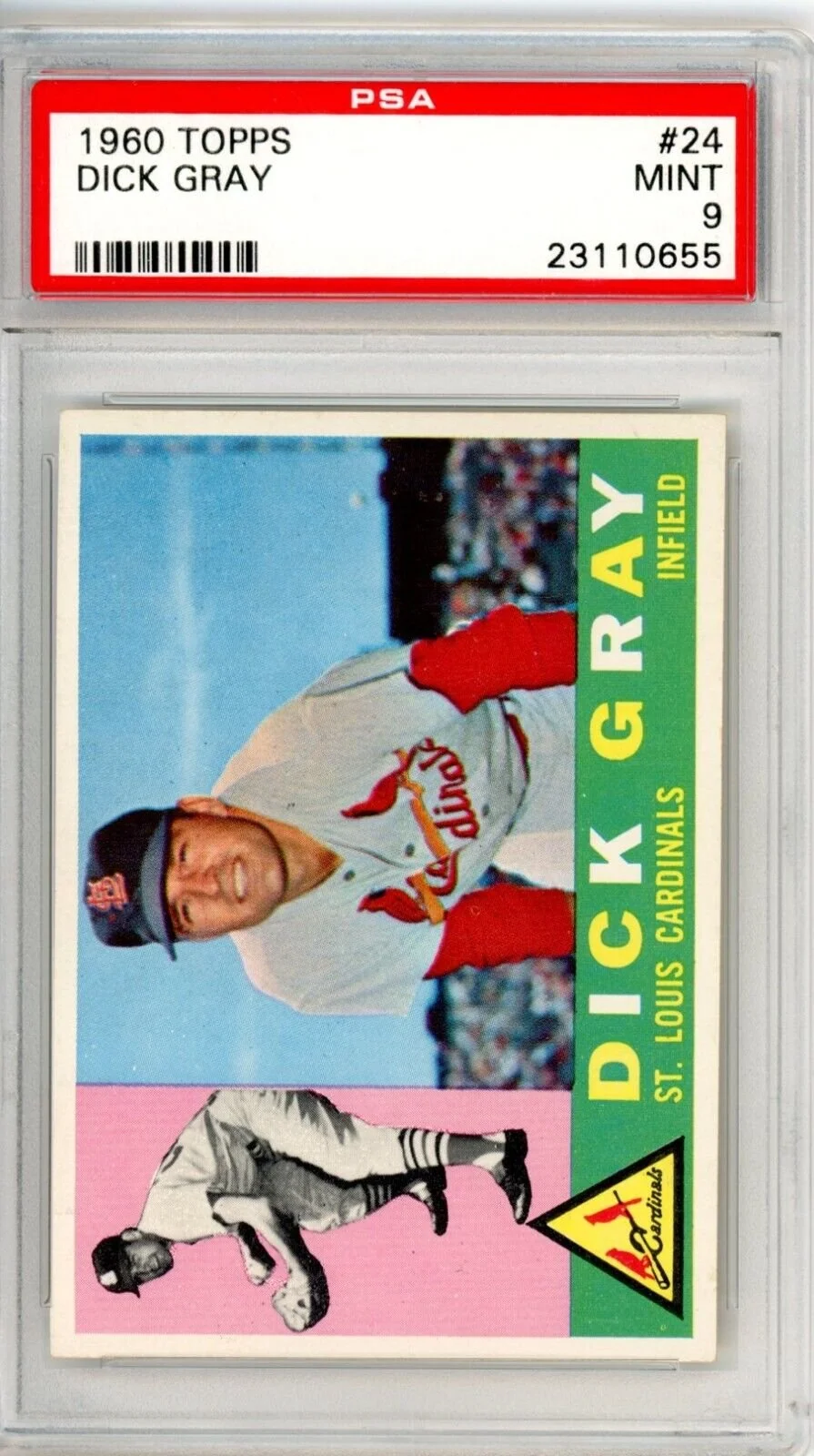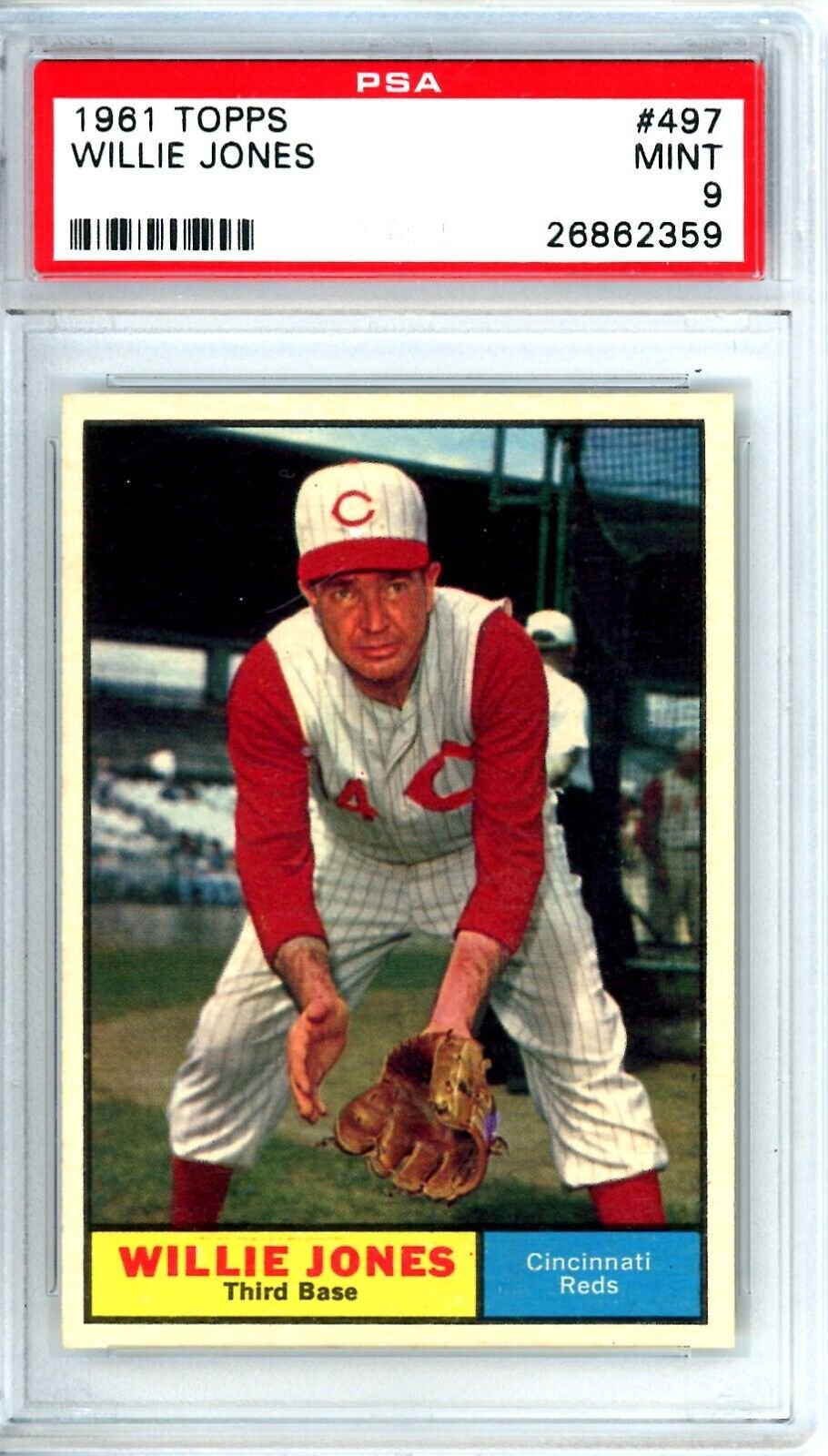 Buying PSA Graded Cards!!! Buying PSA Graded Cards!!! Buying PSA Graded Cards!!! 7% off all listed prices!!! (Discount applied at checkout) 1967 Topps Ed Bressoud #121 PSA 10 Mets 7444 $1,077.00 1977 Topps Blues Team 85 PSA 10 POP 4 Blues 7227 $116.62 1964 Topps Gino Cimilo 26 PSA 10 POP 2 A's 7883 $2,450.00 1955 Bowman Willie Jones 172 PSA 9 Phillies $400.00 1955 Topps Ted Williams 2 PSA 6 Red Sox 11383 $1,469.00 T206 Sovereign 350 Miller Huggins Hands at Mouth PSA 6 Cincinnati 12320 $2,490.00 1950 Bowman Clyde Vollmer 53 SGC 88 Senators 529 $120.00 1966 Topps Wes Westrum 341 PSA 9 Mets 15144 $249.00 1954 Bowman Ransom Jackson 189 PSA 8 Cubs 11008 $53.00 1911 T3 Cy Young PSA 1 #42 Indians Checklist Back 12654 $3,983.00 1964 Topps Lou Clinton 526 PSA 9 Red Sox $124.00 1954 T219 Red Man Indian Chiefs Red Cloud #11 PSA 8 Set Break $147.00 1935 Canada Candy Confectionary Movie Stars PSA 5.5 Highest Grade Tyrone Power $149.00 1971 Topps Hank Aaron 400 PSA 8 Braves 11363 $1,910.00 1954 Topps Willie Jones #41 PSA 8.5 Phillies 12834 $400.00 1962 Topps Bucks Layne 35 PSA 7 5219 $43.00 1973 OPC Lynn McGlothlen 114 PSA 10 Red Sox POP 1 $490.00 1964 Philadelphia Sam Baker #127 Eagles PSA 9 12399 $72.00 1964 Philadelphia Rip Hawkins 103 PSA 9 Vikings 9854 $49.00 1964 Topps Don Landrum 286 PSA 10 POP 2 Cubs 8001 $2,450.00 1953 Topps Eddie Mathews #37 PSA 8 Braves $1,698.00 1954 T219 Red Man Indian Chiefs Arkikita #20 PSA 8 Set Break $122.50 1963 Topps Johnny Klippstein 571 PSA 9 Phillies 2441 $96.00 1935 Canada Candy Confectionary Movie Stars PSA 4.5 Highest Grade Edward Arnold $149.00 1954 Topps Bob Trice 148 PSA 8.5 Cardinals 12828 $398.00 1964 Topps Venezuela Yogi Berra #21 PSA 5 Yankees 14331 $979.00 1940 Lone Ranger Smugglers' Love 39 PSA 8 Lone Ranger 13005 $600.00 T206 Piedmont 350-460/25 Christy Mathewson Dark Cap PSA 2 NY Nat 10579 $2,128.00 1964 Topps Glen Hobbie 578 PSA 9 Cubs 12915 $124.00 1966 Topps Ken McMullen 401 PSA 9 Senators 9694 $58.00 1961 Topps Ed Keegan #248 PSA 10 A's 12560 $2,940.00 1966 Topps Bill Bryan 332 PSA 9 A's 15149 $400.00 1962 Topps Bobby Conrad 141 PSA 8 Cardinals 3874 $125.44 1948 Bowman Helena Carter 19 PSA 8.5 7451 $169.00 1935 Canada Candy Confectionary Movie Stars PSA 6.5 Highest Grade Buck Jones $495.00 1950 Bowman Wally Westlake #69 Pirates PSA 8.5 11538 $392.00 1966 Topps Chris Zachary 313 PSA 9 Astros 13073 $200.00 1965 Topps Astros Rookies Joe Morgan 16 PSA 9 Astros $5,290.00 1955 Bowman Pete Suder 6 PSA 8.5 A's $600.00 1957 Topps Ed Fitzgerald 367 PSA 8 Senators 1399 $43.00 1965 Philadephia Clarence Peaks 151 PSA 9 14228 Steelers $99.00 1964 Philadelphia Tommy Mason #105 Vikings PSA 9 12396 $72.00 1965 Topps NL Rookies Perez 581 PSA 9 Reds 10125 $3,136.00 1963 Topps CFL White 57 PSA 9 Rough Riders 3882 $52.00 1949 Bowman Barney McCosky 203 PSA 8 Browns 518 $144.06 1962 Topps Hank Aaron 320 PSA 8 Braves 11282 $5,380.00 1964 Philadelphia Forest Gregg #73 Packers PSA 9 12416 $119.00 1973 Topps Ray Newman 568 PSA 10 Brewers 5004 $490.00 1975 Topps Cello Pack Ruthven/L.Foster PSA 10 12902 $1,568.00 1966 Topps Floyd Weaver 231 PSA 9 Indians 14322 $150.00 1952 Bowman Small Emlen Tunnell #39 PSA 8 Giants 10553 $588.00 1957 Topps Jack Meyer 162 PSA 8 Phillies 1313 $42.00 1959 Indian Trading Card Eskimo on Seal Hunt Left 70 PSA 10 14068 $124.00 1964 Philadelphia King Hill #134 Eagles PSA 9 12404 $73.00 1954 T219 Red Man Indian Chiefs John Grass #21 PSA 9 Set Break $490.00 1955 Bowman Ernie Banks 242 PSA 8 Cubs 11630 $11,166.00 1966 Topps Joe Pepitone #79 PSA 9 Yankees 12456 $587.00 1941 Double Play Hassett / Moore PSA 8.5#121 / 122 Braves 10930 $588.00 1965 Philadephia Tony Lorick 6 PSA 9 14199 Colts $200.00 1954 Topps Eddie Stanky #38 PSA 9 Cardinals 11514 $2,842.00 1965 Topps Charlie Long #13 PSA 8 Boston $100.00 1954 Bowman Harry Perkowski 44 PSA 8 Reds 752 $46.00 1954 T219 Red Man Indian Chiefs Lean Wolf #32 PSA 9 Set Break $490.00 1954 Bowman Don Lund 87 PSA 8 Tigers 783 $50.00 1966 Topps Jerry Buchek 454 PSA 9 Cardinals 12104 $71.00 1974 Topps Marty Perez 374 PSA 10 Braves 8416 $292.00 1957 Topps Win Wilfong #65 PSA 8 Hawks 12628 $727.00 1954 Bowman Frank Smith 188 PSA 8 Reds 11009 $53.00 1965 Topps Embossed Koufax 8 PSA 8 Dodgers 10126 $441.00 1966 Topps Don Schwall #144 PSA 9 Pirates 12305 $239.00 1964 Philadelphia St Louis Cardinals Play Card #182 PSA 9 $100.00 1952 Bowman Yogi Berra #1 PSA 6 Yankees $998.00 1966 Topps Pete Richert 95 PSA 9 Senators 15151 $225.00 1950 Bowman Ed Lopat #215 PSA 8 Yankees 10713 $220.50 1967 Topps W.K. Hicks #50 PSA 10 Oilers 12020 $945.95 1964 Phili Darrell Dess 116 PSA 9 Giants 3930 $49.00 1964 Philadelphia Washington Redskins Play Card #196 PSA 9 12421 $122.50 1972 Topps Vince Colbert 84 PSA 10 Indians 9744 $392.00 1967 Philadephia Joe Morrison 116 PSA 8 Giants 14115 $19.00 1962 Topps Indians Team 537 PSA 8 Indians 2269 $46.00 1964 Topps Pete Ward 85 PSA 9 White Sox 12274 $394.00 1966 Topps Hal Lanier 271 PSA 9 Giants 15090 $200.00 1963 Salada Maury Wills 20 PSA 9 5819 $56.00 1964 Philadelphia Ernie Green 35 PSA 8 Browns 12347 $291.00 1961 Topps Orlando Cepeda #435 PSA 8 Giants $100.00 1955 Bowman Randy Jackson 87 PSA 9 Cubs $400.00 Jasper Bratt Bobble Head (2) $24.00 1965 Topps Bernie Allen #237 PSA 9 Twins 11570 $169.00 1966 Topps Turk Farrell 377 PSA 9 Astros $57.00 1966 Topps Checklist 265-352 Player's Cap Red 279 PSA 9 Checklist 15103 $300.00 1964 Topps Set Break (8.92 avg) PSA 8 #52 Chuck Hiinton Senators $63.00 1932 Orbit Gum Kiki Cuyler 6 PSA 8 4659 $155.82 1963 Topps Johnny Logan #259 PSA 9 Pirates 12054 $490.00 1961 Topps Willie Jones PSA 9 #497 Reds 10741 $490.00 1963 Salada Jim Bunning 33 PSA 9 4726 $58.00 1965 Philadephia Fred Cox 104 PSA 9 14218 Vikings $198.00 1964 Topps Ken Aspromonte 252 PSA 10 Cubs 11256 $1,385.00 1966 Topps Buster Narum 274 PSA 9 Senators 15102 $200.00 1961 Fleer Al Jamison 173 PSA 9 Oilers 3803 $47.00 1957 Topps Hit Stars Peir Angeli 79 PSA 9 $899.00 1965 Topps Johnny Robinson 109 PSA 8