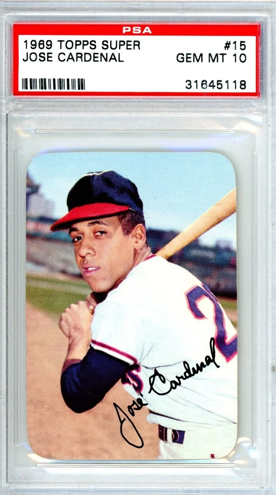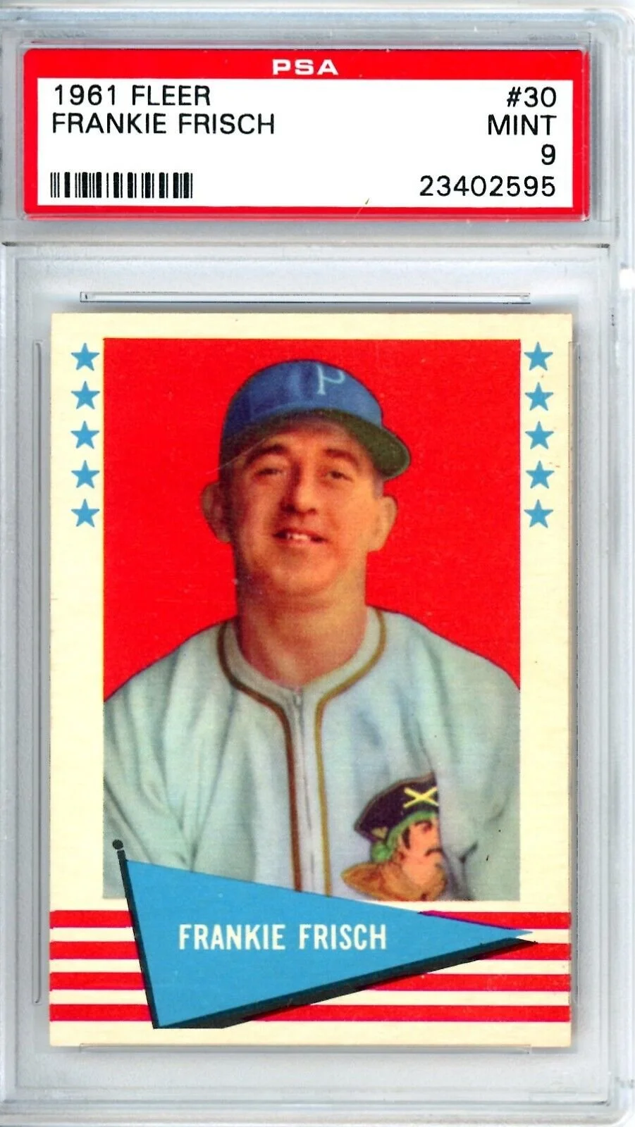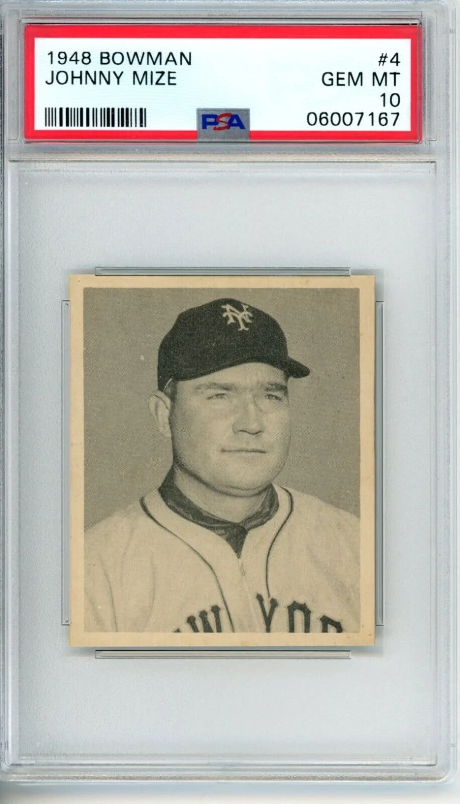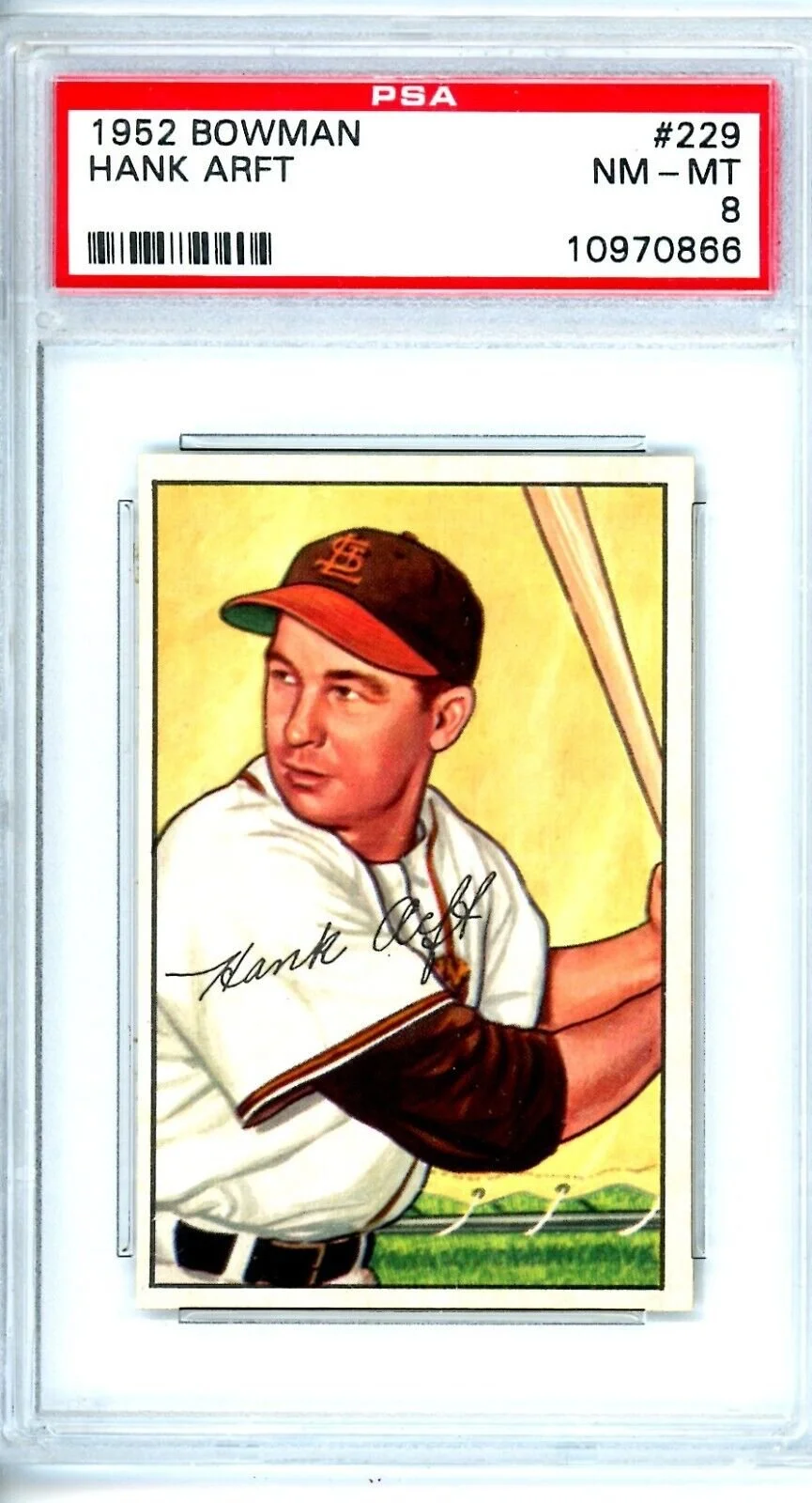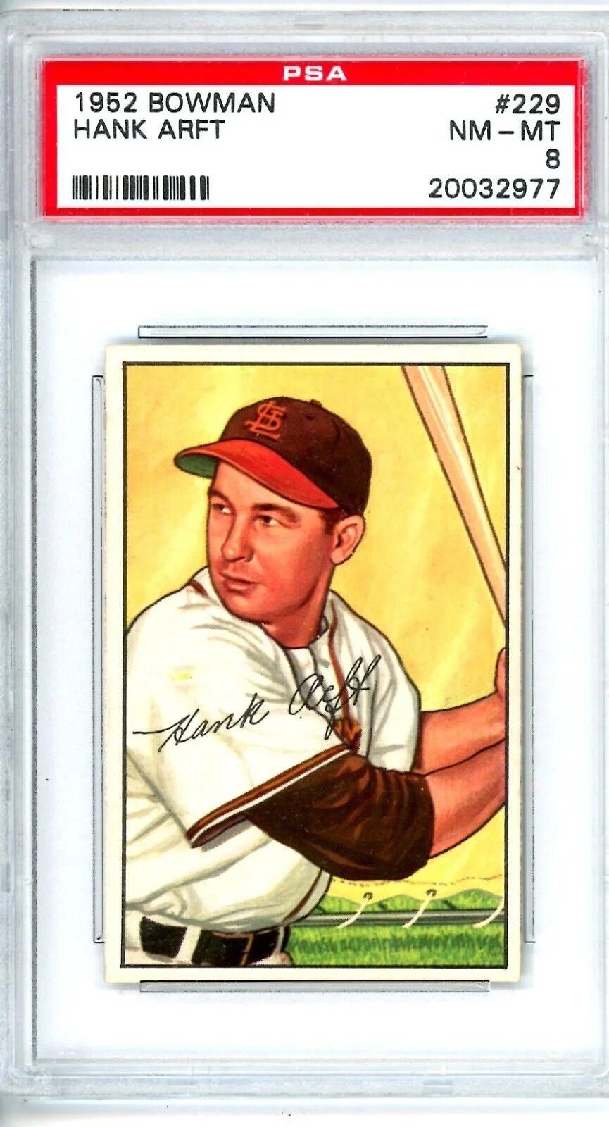 Buying PSA Graded Cards!!! Buying PSA Graded Cards!!! Buying PSA Graded Cards!!! 7% off all listed prices!!! (Discount applied at checkout) T202 Hassan Chance Beats Out PSA 7 Cubs 9925 $1,347.00 1966 Topps John Buzhardt 245 PSA 9 White Sox 10003 $49.00 1952 Bowman Hank Arft 229 PSA 8 Browns 659 $98.00 Sold out 1964 Topps Jim Coker 211 PSA 9 Cardinals $225.00 1962 Topps Chuck Essegian #379 PSA 9 Indians 11754 $467.00 1954 Bowman Andy Seminick 172 PSA 9 Reds 1495 $319.48 1961 Topps Bill Kunkel #322 PSA 8 A's 10728 $49.00 1959 Topps Fabian 22 PSA 9 4302 $23.00 1961 Topps Tom Sturdivant #293 PSA 8 Senators $73.00 1963 Topps Johnny Unitas #1 Colts PSA 9 10964 $58,212.00 1963 Topps Orlando Pena 214 PSA 9 A's 2105 $96.00 1952 Bowman Alex Kellner 226 PSA 8 A's 649 $97.02 Hakeem Olajuwon Rockets Original 16 * 20 Leon Wolf Painting #2 $436.00 1955 Bowman Len Ford #14 PSA 8 Browns 12307 $490.00 1961 Fleer Al Jamison 173 PSA 9 Oilers 3802 $46.00 1965 Philadephia John Baker 142 PSA 8 Steelers $30.00 1961 Topps Russ Nixon 53 PSA 9 Red Sox 13012 $69.00 Sold out 1936 S&S Arky Vaughan PSA 9 Pirates $164.00 1964 Topps Jim Schaffer #359 Cubs PSA 9 slight crack on reverse 12972 $62.00 1965 Philadephia Eagles Play Card 140 PSA 9 Eagles $900.00 1951 Bowman Fred Morrison 49 PSA 8 Bears 9878 $97.00 1966 Philiadelphia Detriot Lions Play Card #70 PSA 9 Lions 12908 $100.00 Troy Aikman Cowboys Original 16 * 20 Leon Wolf Painting $436.00 1964 Phili Rip Hawkins 103 PSA 9 Vikings 3924 $48.00 1965 Philadephia Roosevelt Grier 88 PSA 8 14164 Rams $49.00 1952 Dixie Cup Robert Taylor PSA 9 5330 $27.00 1968 Topps Russ Gibson 297 PSA 10 Red Sox 12464 $323.00 1972 OPC Nick Libett 45 PSA 10 Red Wings $490.00 1964 Topps Set Break PSA 8 #201 Orioles Rookies Bowens / Bunker 12951 $49.00 1957 Topps Bill Russell 77 PSA 6.5 Celtics 13014 $30,096.00 1961 Fleer Baseball All-Time Great SET #30 PSA 9 Frankie Frisch `12707 $98.00 1962 Topps Ron Hansen #245 PSA 9 Orioles 15051 $300.00 1966 Phili San Francisco Play 182 PSA 9 49'ers 4041 $50.00 Emmitt Smith Cowboys Original 16 * 20 Leon Wolf Painting #2 $436.00 1965 Philadephia Rams Team 85 PSA 8 Rams $30.00 1968 Topps Cal Ermer 206 PSA 10 Twins 11468 $249.00 1959 Topps Fabian 34 PSA 9 POP Music 7553 $29.00 1966 Topps Lee Stange 371 PSA 10 POP 8 Indians 7610 $490.00 1958 Topps Jim Brown Browns #62 PSA 8 10970 $48,024.90 1952 Bowman Hank Arft 229 PSA 8 Browns 658 $98.00 1961 Topps Chuck Cottier 13 PSA 9 Tigers 2821 $73.00 1954 Topps Bob Kuzava #230 PSA 9 Yankees 11530 $1,126.00 1966 Topps Lenny Green #502 PSA 9 Red Sox 12106 $73.00 1954 Bowman Maurice McDerrmott 56 PSA 8 Senators 761 $46.00 1959 Topps Jack Urban 18 PSA 8 A's 1960 $31.00 1955 Bowman Hal Rice 52 PSA 9 Cubs $300.00 1969 Topps Super Jose Cardenal 15 PSA 10 14058 Indians 250 $250.00 1965 Philadephia John Nisby 192 PSA 8 14193 Redskins $20.00 1957 Topps Hank Aaron #20 PSA 7 Braves 12435 $1,940.40 1951 Bowman Jets Rocket Spaceman Rocket Repair 23 PSA 9 Jets 10088 $490.00 1961 Fleer Baseball All-Time Great SET BREAK #147 PSA 9 Johnny Vander Meer $98.00 1961 Topps Gary Geiger 33 PSA 9 Red Sox 2849 $73.00 1961 Topps Mickey Mantle #300 PSA 9 Yankees $46,558.00 1962 Topps Mickey Mantle AS #471 Yankees PSA 9 10842 $47,442.78 1959 Topps Los Angeles Rams Pennant Card PSA 10 Rams 15045 $3,897.00 1888 n2 allen ginter american indian chiefs Great War Chief PSA 6 12302 $345.00 1966 Topps Dick Stigman #512 PSA 9 Red Sox 12530 $57.00 1974 Topps Gary Gentry 415 PSA 10 POP 2 Braves $588.00 1954 T219 Red Man Indian Chiefs Always Riding #12 PSA 7.5 Set Break $98.00 1968 Topps Darrell Brandon 26 PSA 10 Red Sox 13019 $1,198.00 1969 Topps Willie Mays 190 PSA 9 Giants 11266 $5,922.18 1964 Phili Rams Play 98 PSA 9 Rams 3916 $48.00 1964 Philadelphia Abe Woodson PSA 8 #166 49’ers 3944 $15.00 T206 Hindu Brown Roger Bresnahan Portrait PSA 2 St Louis National 15047 $1,800.00 1952 Dixie Cup Dagmar Dagmar PSA 8 5331 $11.00 1936 S&S Mule Haas PSA 8 White Sox 1 972 $27.00 1972 Topps Ron Woods #82 Expos PSA 10 9743 $391.00 1946 Kellogg's Presidents Monroe 5 PSA 8 President 4380 Only 1 ever graded!! $387.10 1965 Philadephia Frank Varrichione 96 PSA 8 14166 Rams $20.00 1961 Fleer Baseball All-Time Great SET BREAK #131 PSA 9 Bob O'Farrell $98.00 1961 Fleer Baseball All-Time Great SET BREAK #55 PSA 9 Ernie Lombardi $73.00 1952 Bowman Large Leon Heath #15 PSA 8 Lions 12238 $490.00 1957 Topps Willie Mays #10 Giants PSA 7 12882 $1,930.50 1948 Bowman Johnny Mize PSA 10 Yankees 14352 $47,025.00 1963 Topps CFL Ernest White #57 Rough Riders PSA 9 $48.00 1960 Topps Bill Miller 101 PSA 9 Cardinals $593.00 1962 Topps Willie Tasby #462 W on Cap PSA 8.5 Indians $1,000.00 1967 Topps Mickey Mantle PSA 6 #150 Yankees 11318 $1,077.00 1965 Philadephia Bart Starr 81 PSA 8 Packers $350.00 1961 Nu-Card Larry Thompson 153 PSA 9 Tulane 3837 $17.00 T207 Recruit Roger Bresnahan PSA 6 St Louis Nat 8339 $640.33 1974 Topps Rich Morales 387 PSA 10 POP 5 Padres 7267 $357.70 1959 Topps Hobie Landrith 422 PSA 8 Giants 2704 $23.00 1950 Bowman Ted Williams 98 PSA 8 Red Sox 11432 $7,664.58 1964 Phili Rip Hawkins 103 PSA 9 Vikings 3921 $49.00 ALLEN & GINTER's IMERIAL SMOKING MIXTURE AMERICAN TOBACCO CO TIN CAN ORIGINAL $50.00 1949 Bowman Ralph Branca 194 PSA 8 Dodgers 11257 $588.00 1961 Fleer Baseball All-Time Great SET BREAK # 27 PSA 9 Lew Fonseca 12706 $73.00 1965 Philadephia Vikings Play Card 112 PSA 8 Vikings $50.00 1968 Topps Hank Aaron #110 PSA 8 Braves 12303 $1,291.00 1963 Topps Johnny Klippstein 571 PSA 9 Phillies 2442 $97.00 1964 Philadelphia Norman Snead #138 PSA 9 Eagles 12424 $294.00 T206 Sweet Caporal 350 Chritsy Mathewson Dark Cap PSA 7 Giants 15057 $21,599.00 1965 Philadephia Mike Pyle 24 PSA 8.5 Bears $37.00 1959 Topps Bob Mabe 356 PSA 8 Reds 2636 $23.00 1962 Topps Bucks Tarkenton 33 PSA 8 Vikings Tough rookie!!! 5268 Case Crack $823.70 1967 Philadephia Cowboys Insignia 60 PSA 9 Cowboys $350.00 1954 T219 Red Man Indian Chiefs Big Razor #19 PSA 8 Set Break $121.00 1955 Bowman Frank Sec