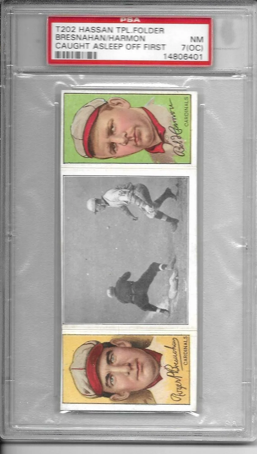 1912 T-202 Bresnahan/Harmon Caught Asleep off first PSA 7 o/c Cardinals 3396