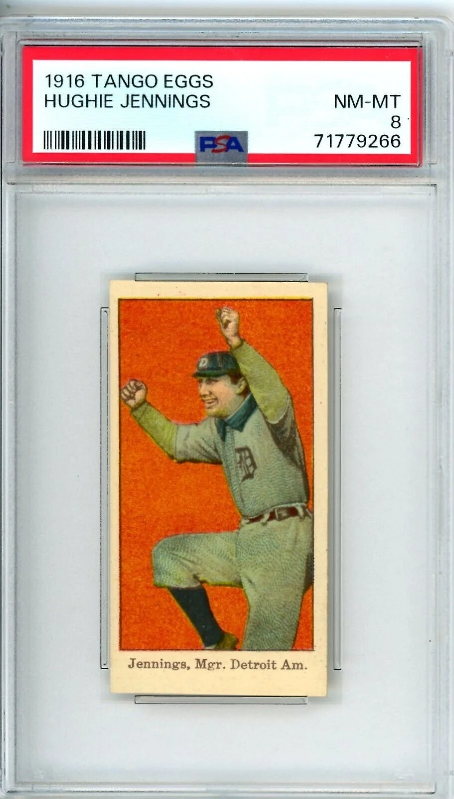 Shop › 1916 Tango Eggs Hughie Jennings PSA 8 Tigers 12436 Image 1 of 1 1916 Tango Eggs Hughie Jennings PSA 8 Tigers 12436 $1,273.00 Thousands of high grade PSA cards available New cards added weekly Always check KRISKEPPLERSPORTSCARDS Add To Cart Added! Thousands of high grade PSA cards available New cards added weekly Always check KRISKEPPLERSPORTSCARDS