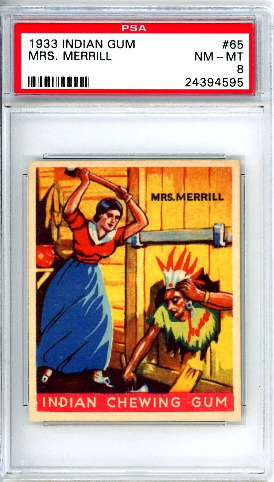 Shop › 1933 Indian Gum Mrs. Merrill #65 PSA 8 12449 Image 1 of 1 1933 Indian Gum Mrs. Merrill #65 PSA 8 12449 $588.00 Thousands of high grade PSA cards available New cards added weekly Always check KRISKEPPLERSPORTSCARDS Add To Cart Added! Thousands of high grade PSA cards available New cards added weekly Always check KRISKEPPLERSPORTSCARDS