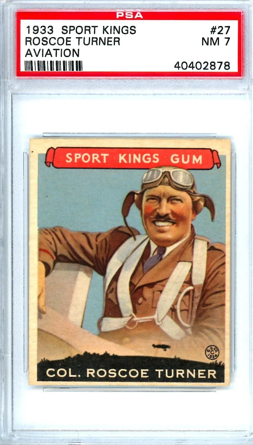 Shop › 1933 Sport Kings Roscoe Turner #27 Aviator PSA 7 11155 Image 1 of 1 1933 Sport Kings Roscoe Turner #27 Aviator PSA 7 11155 $921.00 Thousands of high grade PSA cards available New cards added weekly Always check KRISKEPPLERSPORTSCARDS Add To Cart Added! Thousands of high grade PSA cards available New cards added weekly Always check KRISKEPPLERSPORTSCARDS