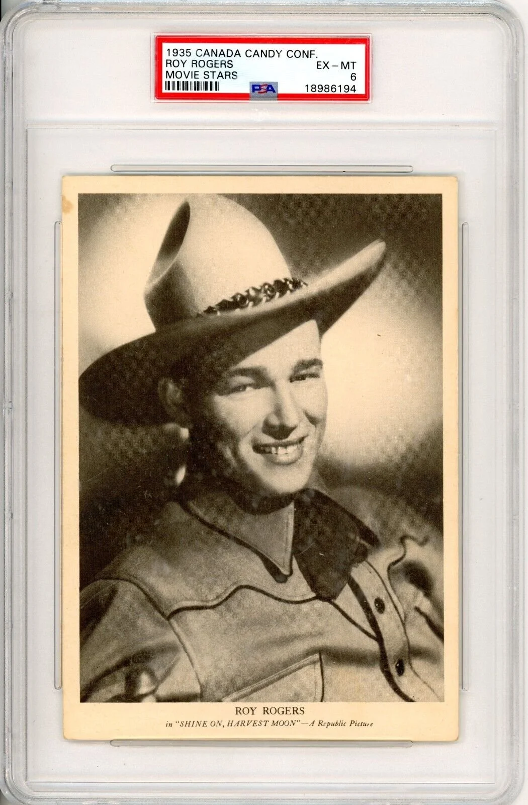 Shop › 1935 Canada Candy Confectionary Movie Stars PSA 6 POP 1 Highest Roy Rogers Image 1 of 1 1935 Canada Candy Confectionary Movie Stars PSA 6 POP 1 Highest Roy Rogers $695.00 Kriskepplersportscards Add To Cart Added! Kriskepplersportscards