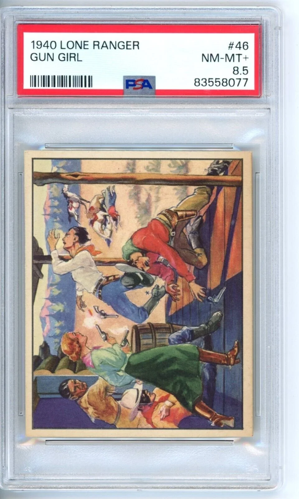 Shop › 1940 Lone Ranger Gun Girl 46 PSA 8.5 Lone Ranger 13007 Image 1 of 1 1940 Lone Ranger Gun Girl 46 PSA 8.5 Lone Ranger 13007 $1,395.00 Thousands of high grade PSA cards available New cards added weekly Always check KRISKEPPLERSPORTSCARDS Add To Cart Added! Thousands of high grade PSA cards available New cards added weekly Always check KRISKEPPLERSPORTSCARDS
