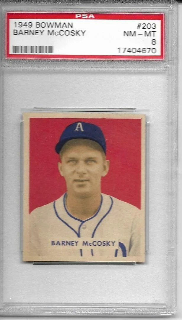 Shop › 1949 Bowman Barney McCosky 203 PSA 8 A's 1153 Image 1 of 1 1949 Bowman Barney McCosky 203 PSA 8 A's 1153 $145.00 Kriskepplersportscards Add To Cart Added! Kriskepplersportscards