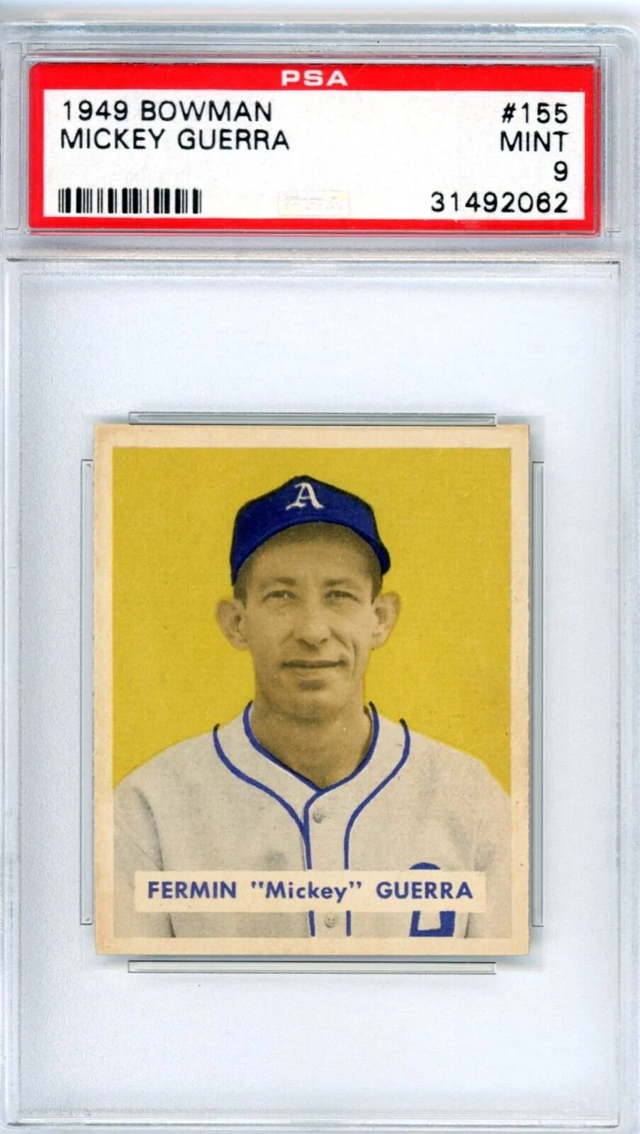 Shop › 1949 Bowman Mickey Guerra 155 PSA 9 A's 12279 Image 1 of 1 1949 Bowman Mickey Guerra 155 PSA 9 A's 12279 $1,981.00 Thousands of high grade PSA cards available New cards added weekly Always check KRISKEPPLERSPORTSCARDS Add To Cart Added! Thousands of high grade PSA cards available New cards added weekly Always check KRISKEPPLERSPORTSCARDS