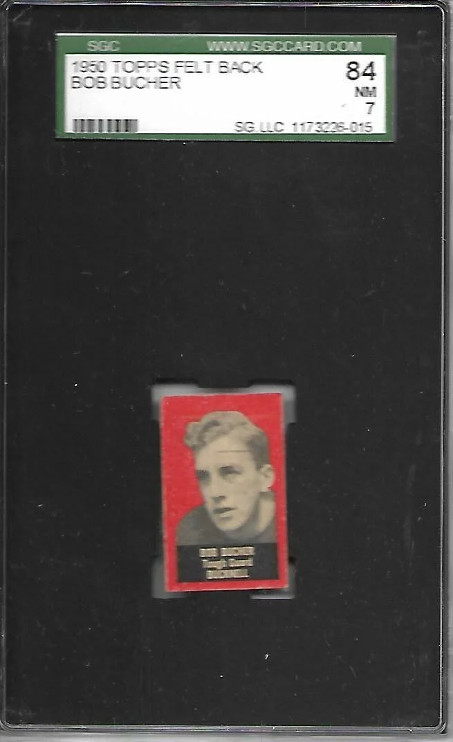 Shop › 1950 Topps Felt Bob Bucher SGC 84 5236 Image 1 of 1 1950 Topps Felt Bob Bucher SGC 84 5236 $91.00 Kriskepplersportscards Add To Cart Added! Kriskepplersportscards