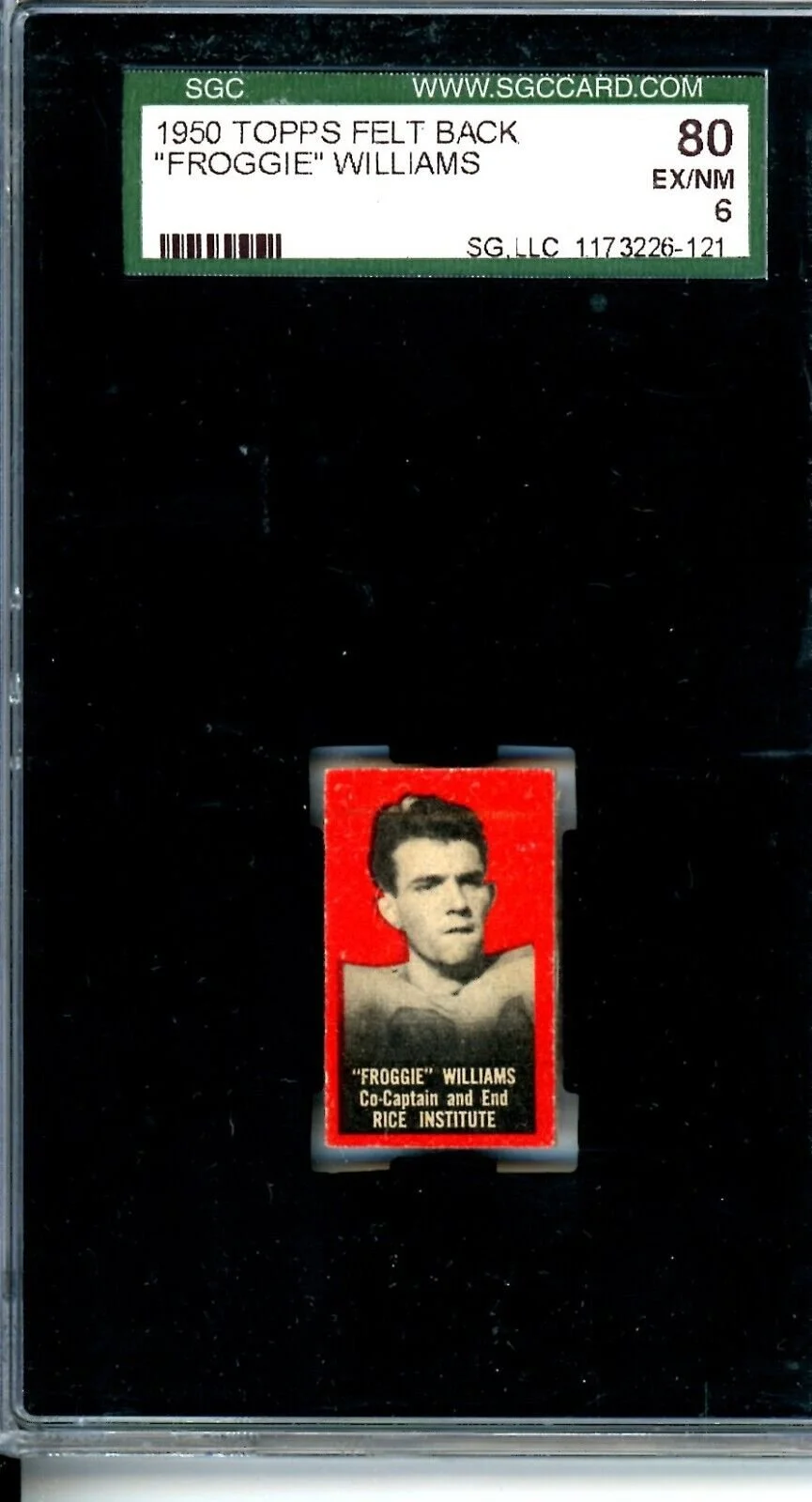 Shop › 1950 Topps Felt Froggie Williams SGC 80 5260 Image 1 of 1 1950 Topps Felt Froggie Williams SGC 80 5260 $50.00 Thousands of high grade PSA cards available New cards added weekly Always check KRISKEPPLERSPORTSCARDS Add To Cart Added! Thousands of high grade PSA cards available New cards added weekly Always check KRISKEPPLERSPORTSCARDS