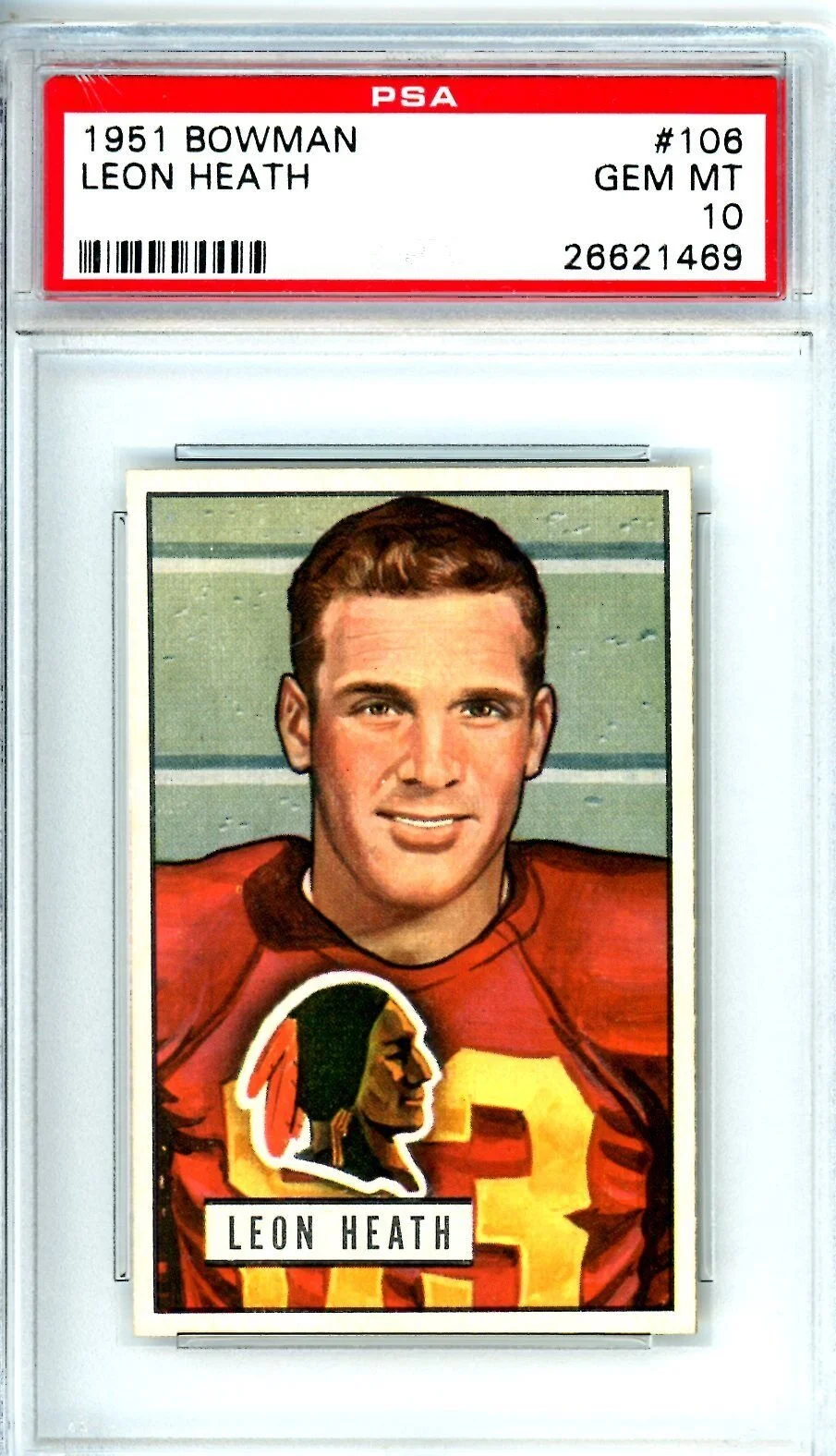 Shop › 1951 Bowman #106 Leon Heath PSA 10 10537 Image 1 of 1 1951 Bowman #106 Leon Heath PSA 10 10537 $8,925.84 Thousands of high grade PSA cards available New cards added weekly Always check KRISKEPPLERSPORTSCARDS Add To Cart Added! Thousands of high grade PSA cards available New cards added weekly Always check KRISKEPPLERSPORTSCARDS
