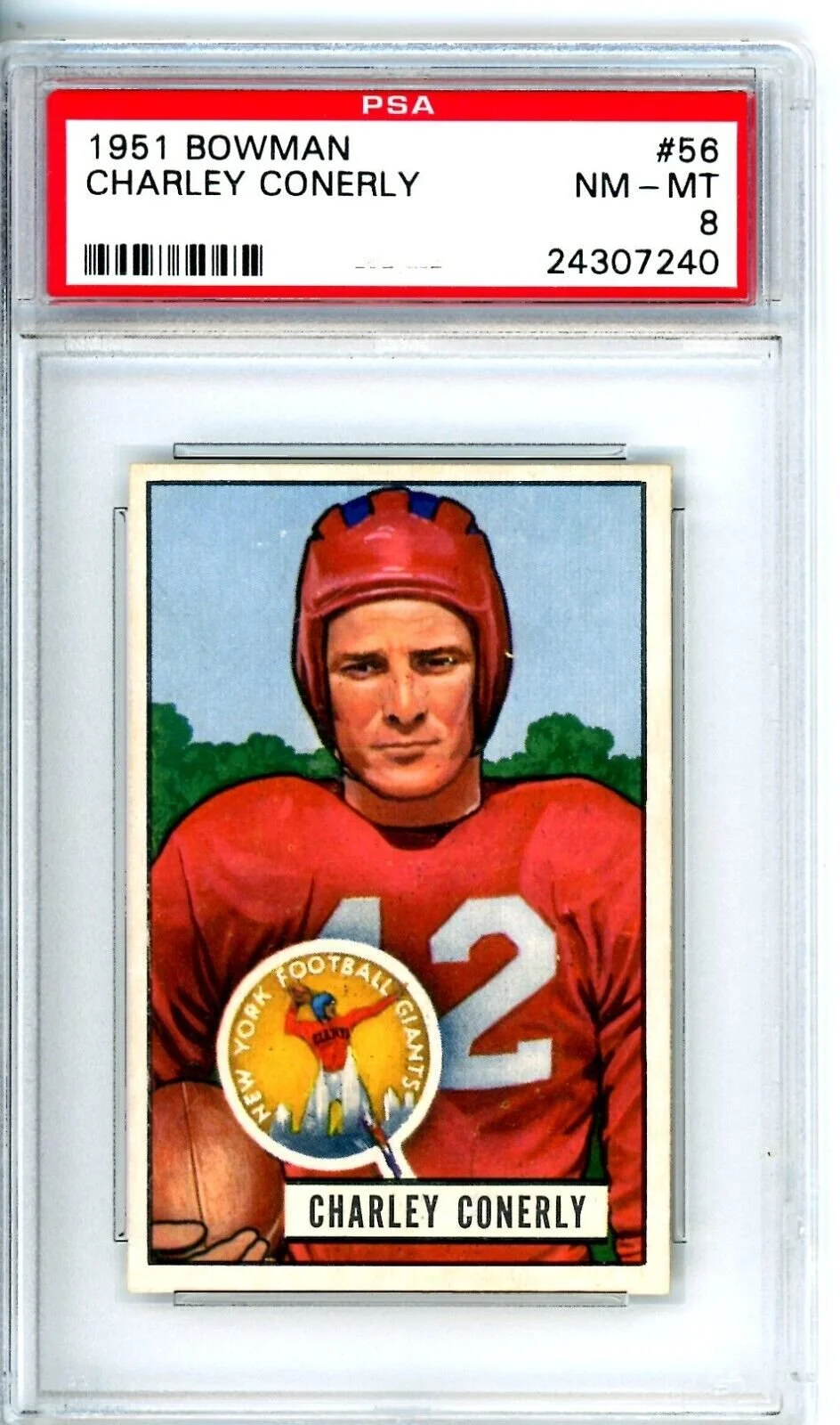 Shop › 1951 Bowman Charley Conerly PSA 8 #56 Giants 12622 Image 1 of 1 1951 Bowman Charley Conerly PSA 8 #56 Giants 12622 $367.50 Thousands of high grade PSA cards available New cards added weekly Always check KRISKEPPLERSPORTSCARDS Add To Cart Added! Thousands of high grade PSA cards available New cards added weekly Always check KRISKEPPLERSPORTSCARDS