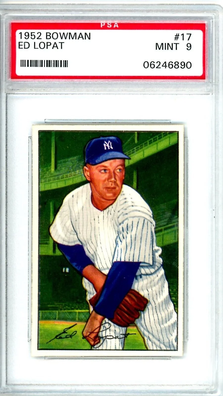 Shop › 1952 Bowman Ed Lopat #17 PSA 9 Yankees 12234 Image 1 of 1 1952 Bowman Ed Lopat #17 PSA 9 Yankees 12234 $979.00 Thousands of high grade PSA cards available New cards added weekly Always check KRISKEPPLERSPORTSCARDS Add To Cart Added! Thousands of high grade PSA cards available New cards added weekly Always check KRISKEPPLERSPORTSCARDS