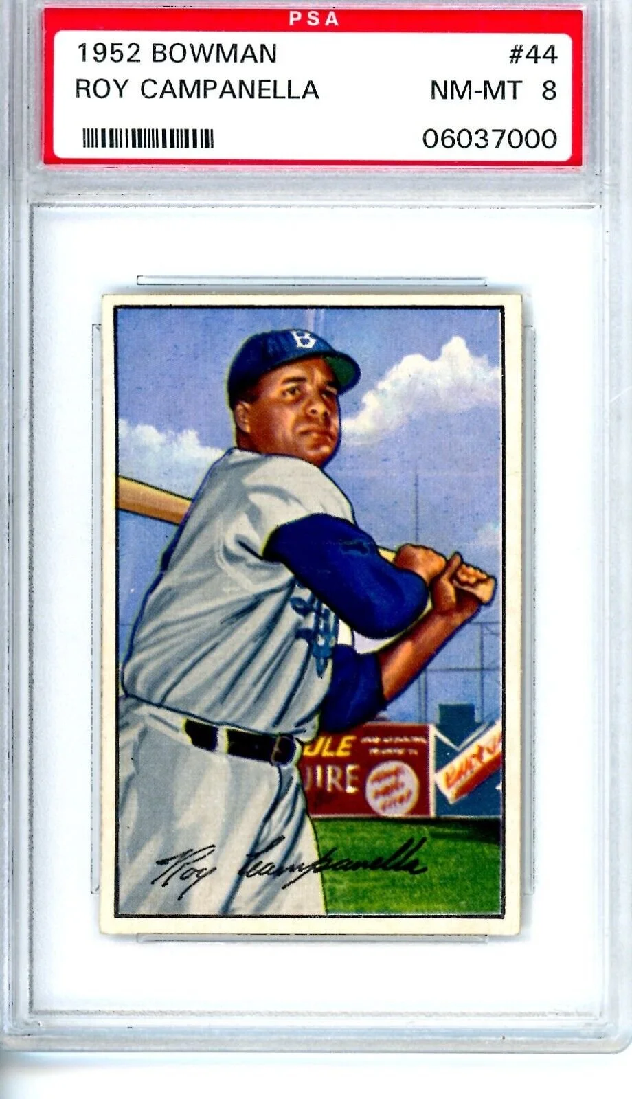 Shop › 1952 Bowman Roy Campanella #44 Dodgers PSA 8 11379 Image 1 of 1 1952 Bowman Roy Campanella #44 Dodgers PSA 8 11379 $1,553.00 Thousands of high grade PSA cards available New cards added weekly Always check KRISKEPPLERSPORTSCARDS Add To Cart Added! Thousands of high grade PSA cards available New cards added weekly Always check KRISKEPPLERSPORTSCARDS