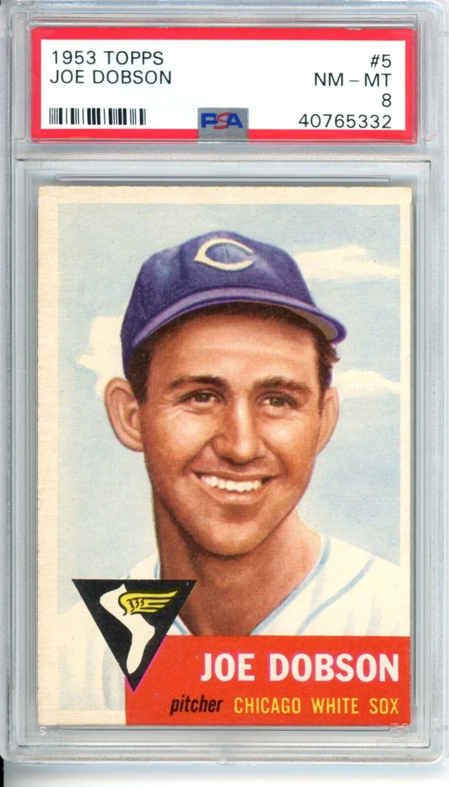Shop › 1953 Topps Joe Dobson 5 PSA 8 White Sox 12933 Image 1 of 1 1953 Topps Joe Dobson 5 PSA 8 White Sox 12933 $170.00 sold out Thousands of high grade PSA cards available New cards added weekly Always check KRISKEPPLERSPORTSCARDS Sold Out Added! Thousands of high grade PSA cards available New cards added weekly Always check KRISKEPPLERSPORTSCARDS