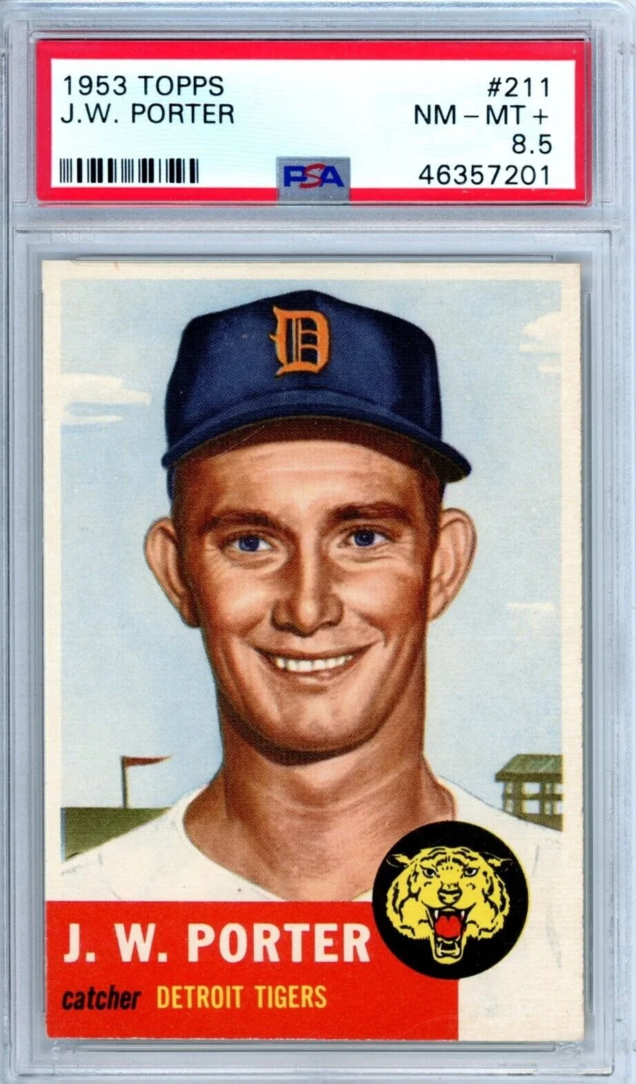 Shop › 1953 Topps JW Porter 211 PSA 8.5 Tigers 13002 Image 1 of 1 1953 Topps JW Porter 211 PSA 8.5 Tigers 13002 $920.70 Thousands of high grade PSA cards available New cards added weekly Always check KRISKEPPLERSPORTSCARDS Add To Cart Added! Thousands of high grade PSA cards available New cards added weekly Always check KRISKEPPLERSPORTSCARDS