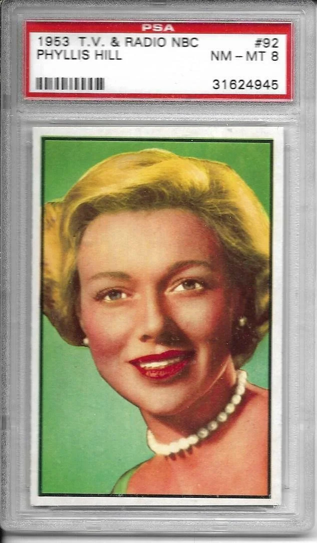 Shop › 1953 TV & Radio Phyllis Hill 92 PSA 8 Film Star 4264 Image 1 of 1 1953 TV & Radio Phyllis Hill 92 PSA 8 Film Star 4264 $19.00 Kriskepplersportscards Add To Cart Added! Kriskepplersportscards
