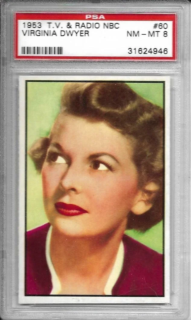 Shop › 1953 TV & Radio Virginia Dwyer 60 PSA 8 Film Star 4263 Image 1 of 1 1953 TV & Radio Virginia Dwyer 60 PSA 8 Film Star 4263 $19.00 Kriskepplersportscards Add To Cart Added! Kriskepplersportscards