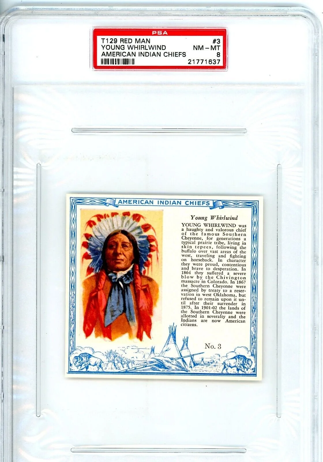 Shop › 1954 T219 Red Man Indian Chiefs Young Whirlwind #3 PSA 8 Set Break Image 1 of 1 1954 T219 Red Man Indian Chiefs Young Whirlwind #3 PSA 8 Set Break $145.00 Kriskepplersportscards Add To Cart Added! Kriskepplersportscards