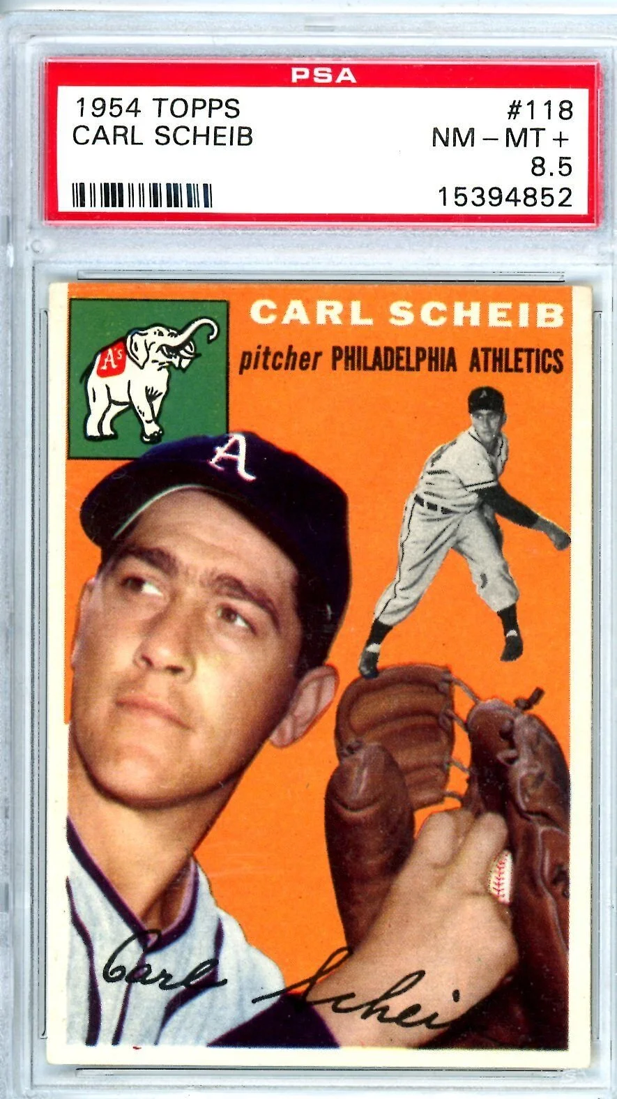 Shop › 1954 Topps Carl Schieb #118 PSA 8.5 A's 10462 Image 1 of 1 1954 Topps Carl Schieb #118 PSA 8.5 A's 10462 $588.00 Thousands of high grade PSA cards available New cards added weekly Always check KRISKEPPLERSPORTSCARDS Add To Cart Added! Thousands of high grade PSA cards available New cards added weekly Always check KRISKEPPLERSPORTSCARDS