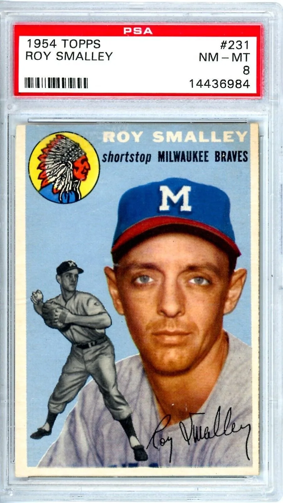 Shop › 1954 Topps Roy Smalley #231 PSA 8 Braves 12252 Image 1 of 1 1954 Topps Roy Smalley #231 PSA 8 Braves 12252 $368.00 Thousands of high grade PSA cards available New cards added weekly Always check KRISKEPPLERSPORTSCARDS Add To Cart Added! Thousands of high grade PSA cards available New cards added weekly Always check KRISKEPPLERSPORTSCARDS
