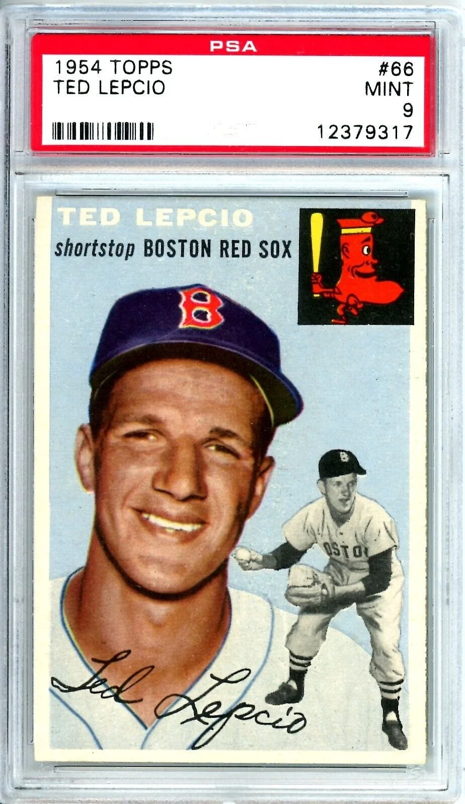 Shop › 1954 Topps Ted Lepcio #66 PSA 9 Red Sox 11516 Image 1 of 1 1954 Topps Ted Lepcio #66 PSA 9 Red Sox 11516 $1,651.00 Thousands of high grade PSA cards available New cards added weekly Always check KRISKEPPLERSPORTSCARDS Add To Cart Added! Thousands of high grade PSA cards available New cards added weekly Always check KRISKEPPLERSPORTSCARDS