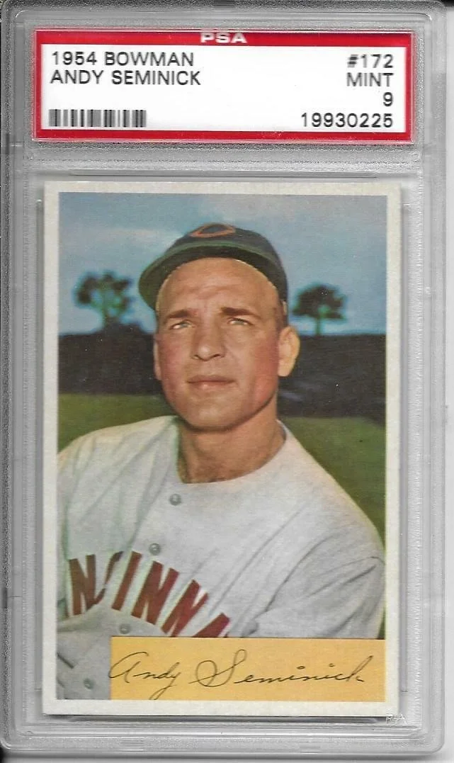 Shop › 1954 Bowman Andy Seminick 172 PSA 9 Reds 1208 Image 1 of 1 1954 Bowman Andy Seminick 172 PSA 9 Reds 1208 $320.00 Kriskepplersportscards Add To Cart Added! Kriskepplersportscards