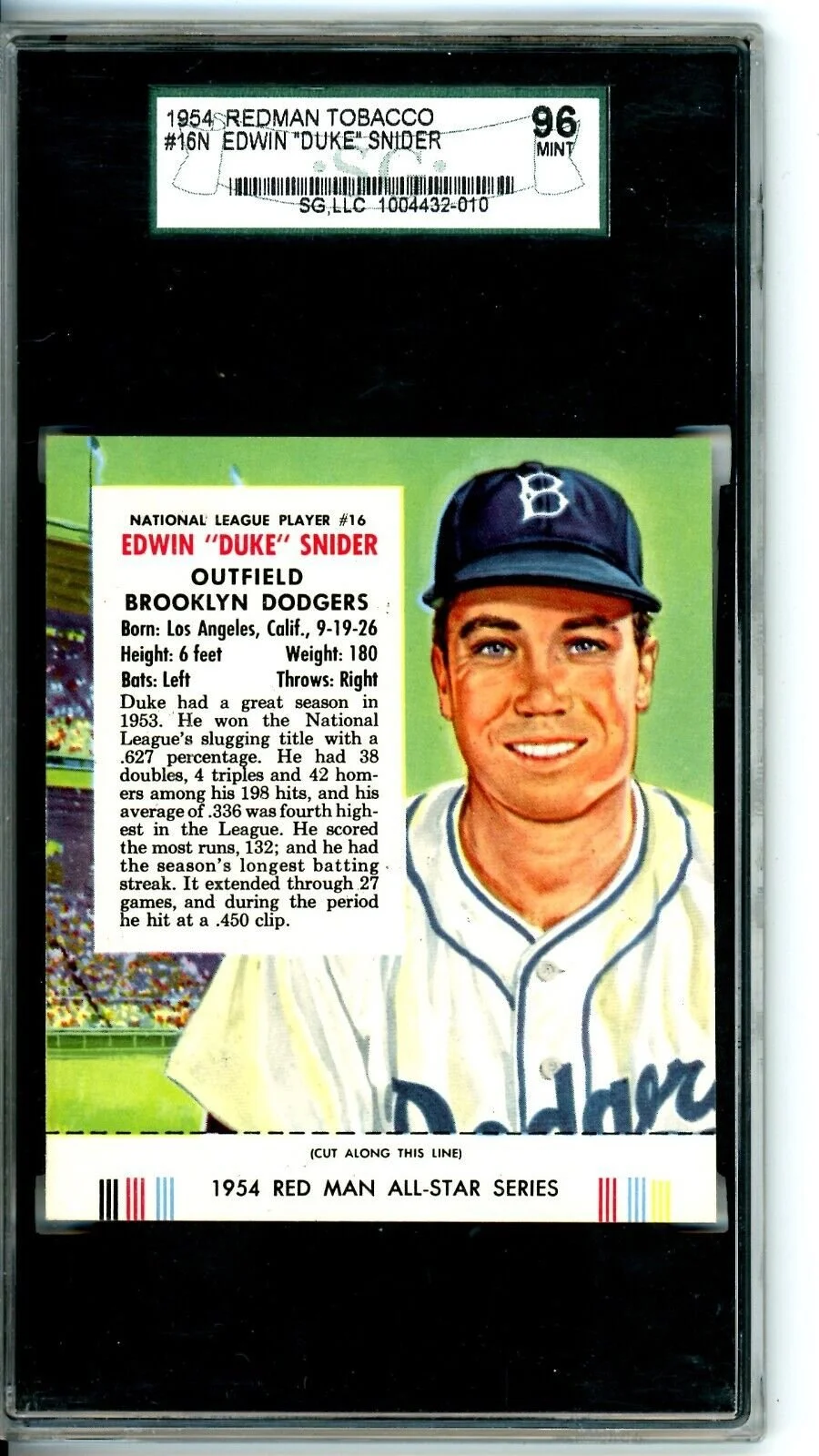 Shop › 1954 Red Man Duke Snider 16 SGC 96 Dodgers 5212 Image 1 of 1 1954 Red Man Duke Snider 16 SGC 96 Dodgers 5212 $1,684.00 Thousands of high grade PSA cards available New cards added weekly Always check KRISKEPPLERSPORTSCARDS Add To Cart Added! Thousands of high grade PSA cards available New cards added weekly Always check KRISKEPPLERSPORTSCARDS