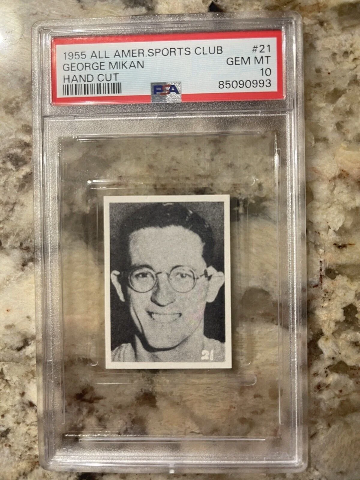 Shop › 1955 All American Sports Club George Mikan #21 PSA 10 Image 1 of 1 1955 All American Sports Club George Mikan #21 PSA 10 $4,976.00 1955 All American Sports Club George Mikan #21 PSA 10. Condition is Graded. Shipped with USPS Ground Advantage. Add To Cart Added! 1955 All American Sports Club George Mikan #21 PSA 10. Condition is Graded. Shipped with USPS Ground Advantage.