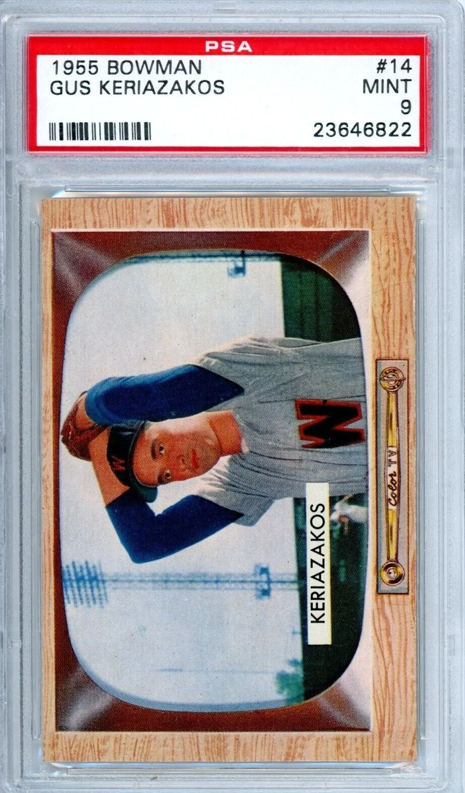 Shop › 1955 Bowman Gus Keriazakos #14 PSA 9 Senators Image 1 of 1 1955 Bowman Gus Keriazakos #14 PSA 9 Senators $600.00 Thousands of high grade PSA cards available New cards added weekly Always check KRISKEPPLERSPORTSCARDS Add To Cart Added! Thousands of high grade PSA cards available New cards added weekly Always check KRISKEPPLERSPORTSCARDS