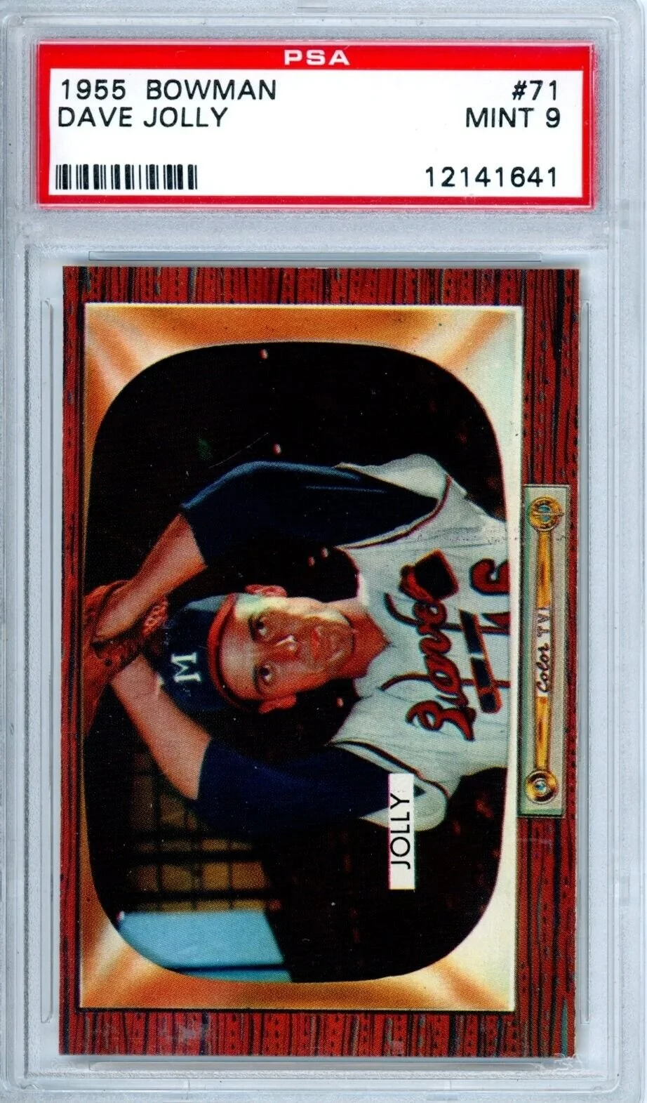 Shop › 1955 Bowman Dave Jolly 71 PSA 9 Braves Image 1 of 1 1955 Bowman Dave Jolly 71 PSA 9 Braves $742.50 Thousands of high grade PSA cards available New cards added weekly Always check KRISKEPPLERSPORTSCARDS Add To Cart Added! Thousands of high grade PSA cards available New cards added weekly Always check KRISKEPPLERSPORTSCARDS