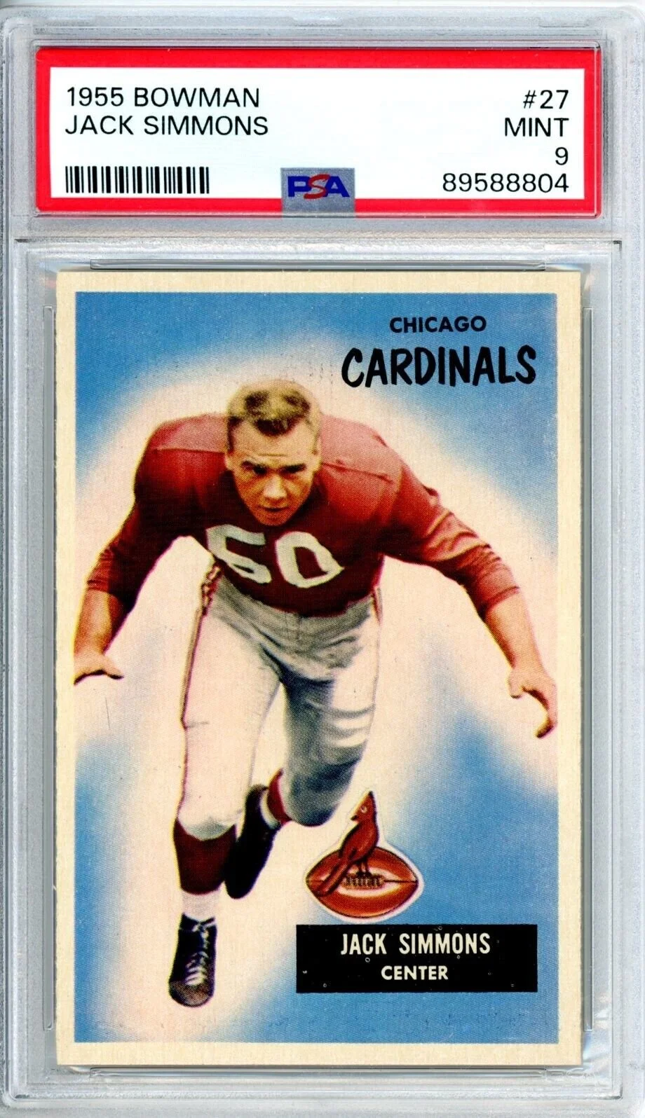 Shop › 1955 Bowman Jack Simmons 27 PSA 9 Cardinals Image 1 of 1 1955 Bowman Jack Simmons 27 PSA 9 Cardinals $891.00 Thousands of high grade PSA cards available New cards added weekly Always check KRISKEPPLERSPORTSCARDS Add To Cart Added! Thousands of high grade PSA cards available New cards added weekly Always check KRISKEPPLERSPORTSCARDS