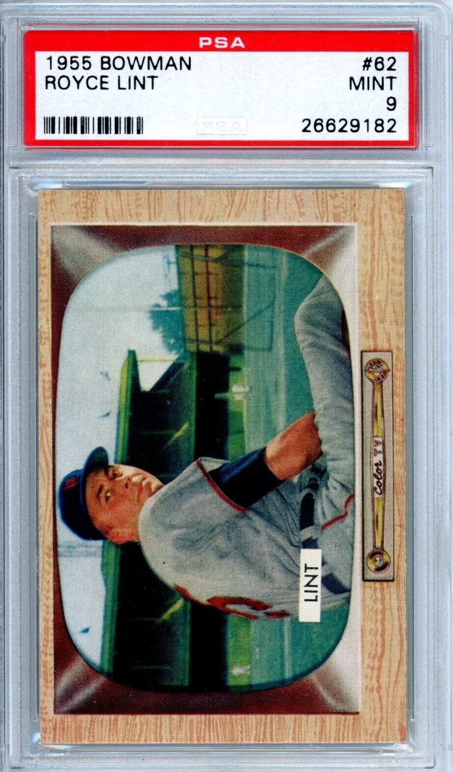 Shop › 1955 Bowman Royce Lint 62 PSA 9 Cardinals Image 1 of 1 1955 Bowman Royce Lint 62 PSA 9 Cardinals $1,485.00 Thousands of high grade PSA cards available New cards added weekly Always check KRISKEPPLERSPORTSCARDS Add To Cart Added! Thousands of high grade PSA cards available New cards added weekly Always check KRISKEPPLERSPORTSCARDS