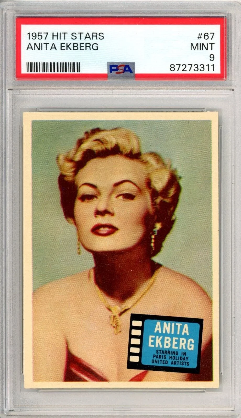 Shop › 1957 Topps Hit Stars Anita Ekberg #67 PSA 9 Rock N Roll Image 1 of 1 1957 Topps Hit Stars Anita Ekberg #67 PSA 9 Rock N Roll $599.00 Kriskepplersportscards Add To Cart Added! Kriskepplersportscards