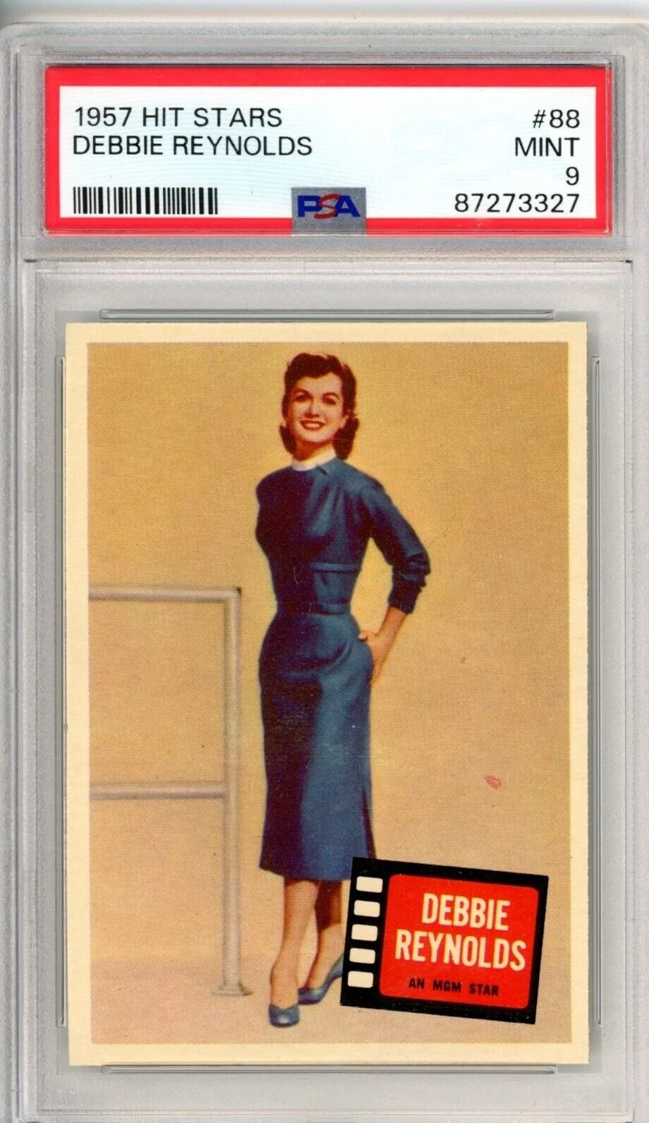 Shop › 1957 Topps Hit Stars Debbie Reynolds #88 PSA 9 Rock N Roll Image 1 of 1 1957 Topps Hit Stars Debbie Reynolds #88 PSA 9 Rock N Roll $473.00 Kriskepplersportscards Add To Cart Added! Kriskepplersportscards