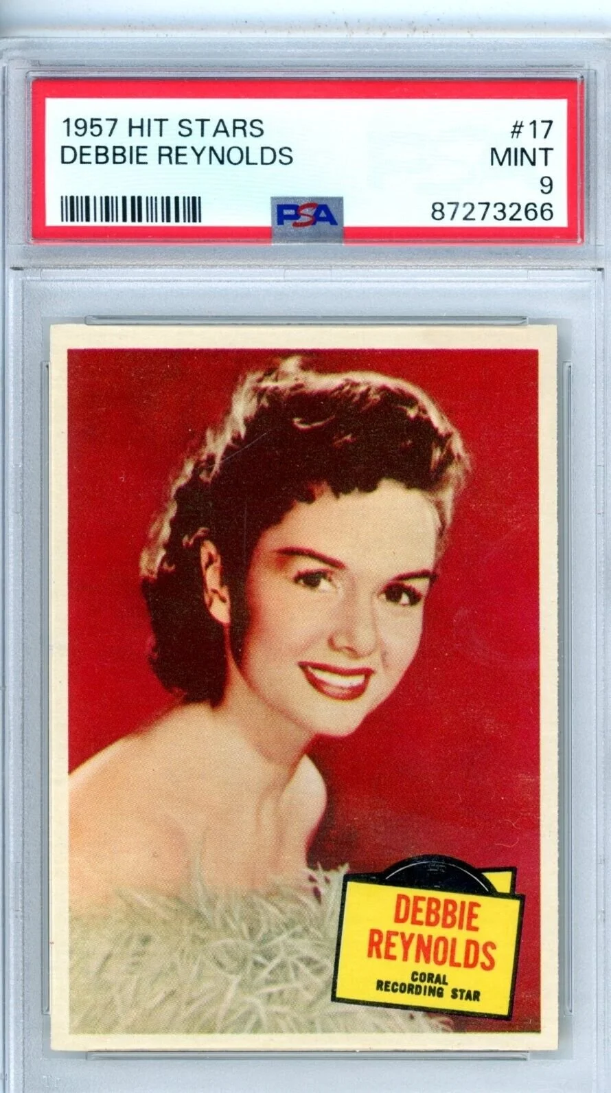 Shop › 1957 Topps Hit Stars Debbie Reynolds 17 PSA 9 Image 1 of 1 1957 Topps Hit Stars Debbie Reynolds 17 PSA 9 $1,485.00 Kriskepplersportscards Add To Cart Added! Kriskepplersportscards