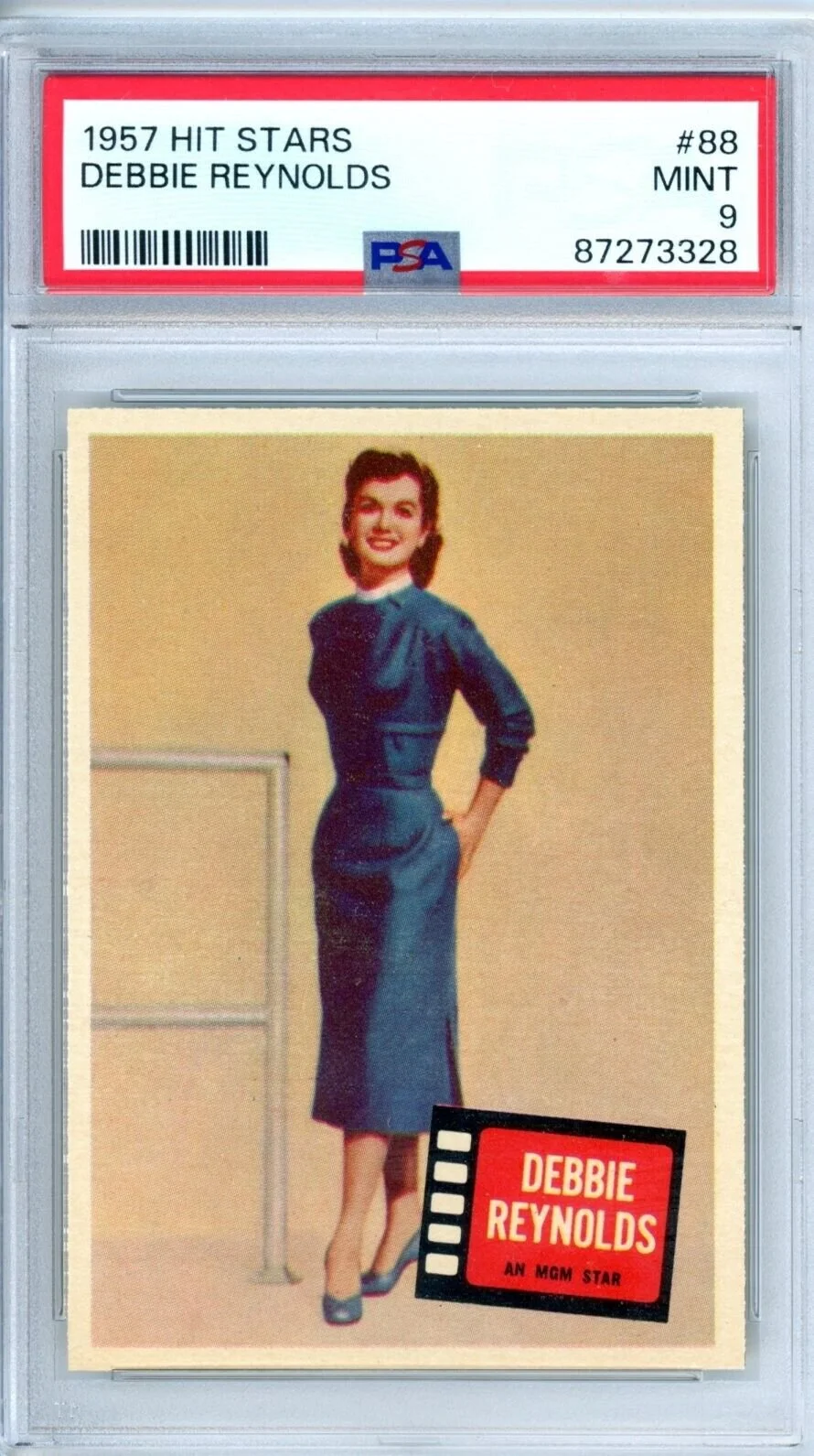 Shop › 1957 Topps Hit Stars Debbie Reynolds 88 PSA 9 Image 1 of 1 1957 Topps Hit Stars Debbie Reynolds 88 PSA 9 $500.00 Kriskepplersportscards Add To Cart Added! Kriskepplersportscards