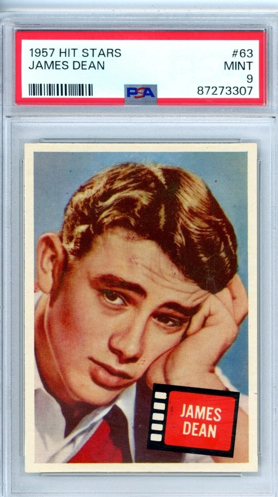 Shop › 1957 Topps Hit Stars James Dean 63 PSA 9 Image 1 of 1 1957 Topps Hit Stars James Dean 63 PSA 9 $1,000.00 Kriskepplersportscards Add To Cart Added! Kriskepplersportscards