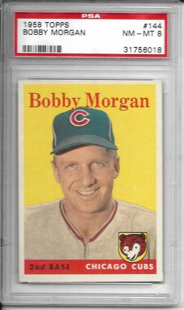 Shop › 1958 Topps Bobby Morgan 144 PSA 8 Cubs 1823 Image 1 of 1 1958 Topps Bobby Morgan 144 PSA 8 Cubs 1823 $34.00 Kriskepplersportscards Add To Cart Added! Kriskepplersportscards
