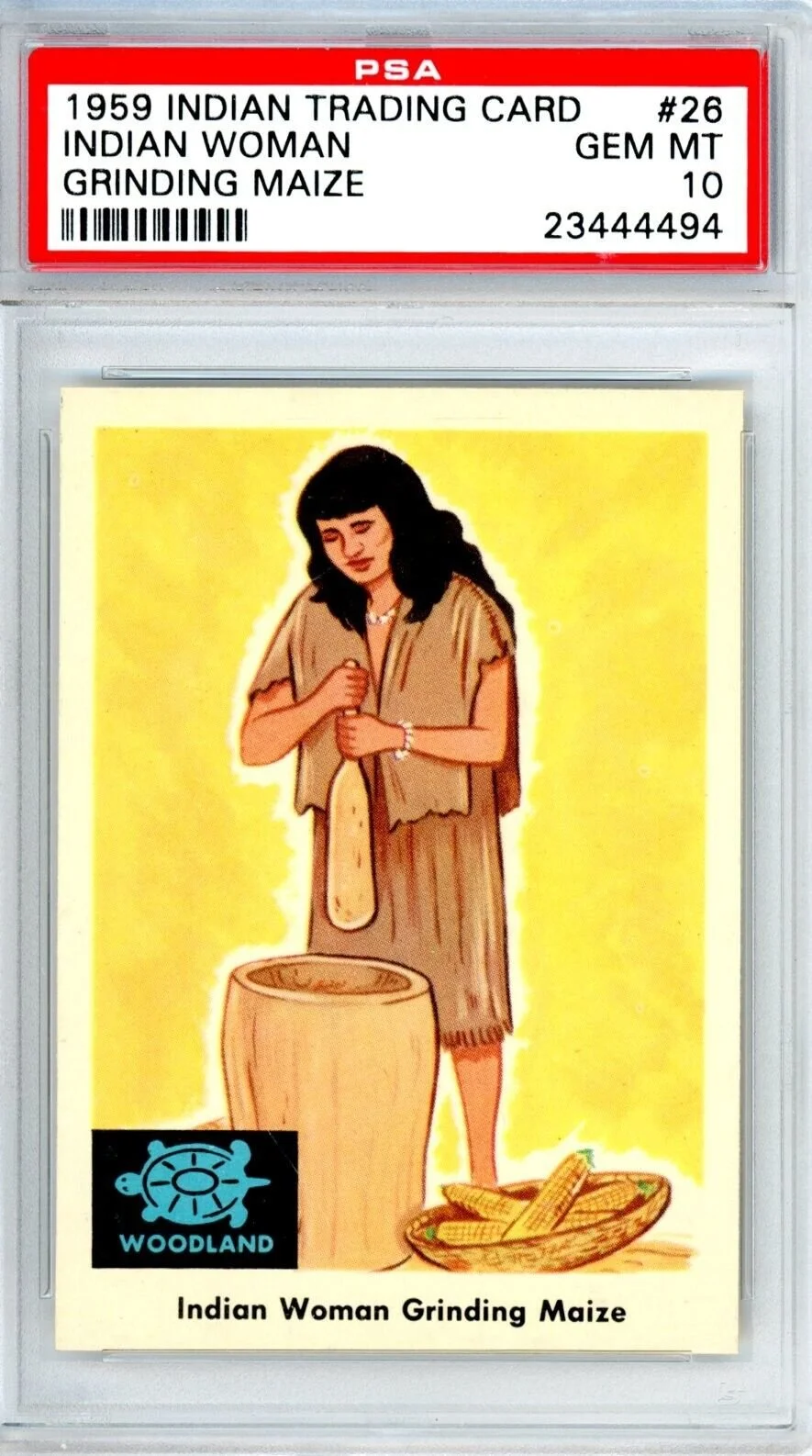 Shop › 1959 Indian Trading Card Woman Grinding Maize 26 PSA 10 14078 Image 1 of 1 1959 Indian Trading Card Woman Grinding Maize 26 PSA 10 14078 $75.00 Thousands of high grade PSA cards available New cards added weekly Always check KRISKEPPLERSPORTSCARDS Add To Cart Added! Thousands of high grade PSA cards available New cards added weekly Always check KRISKEPPLERSPORTSCARDS