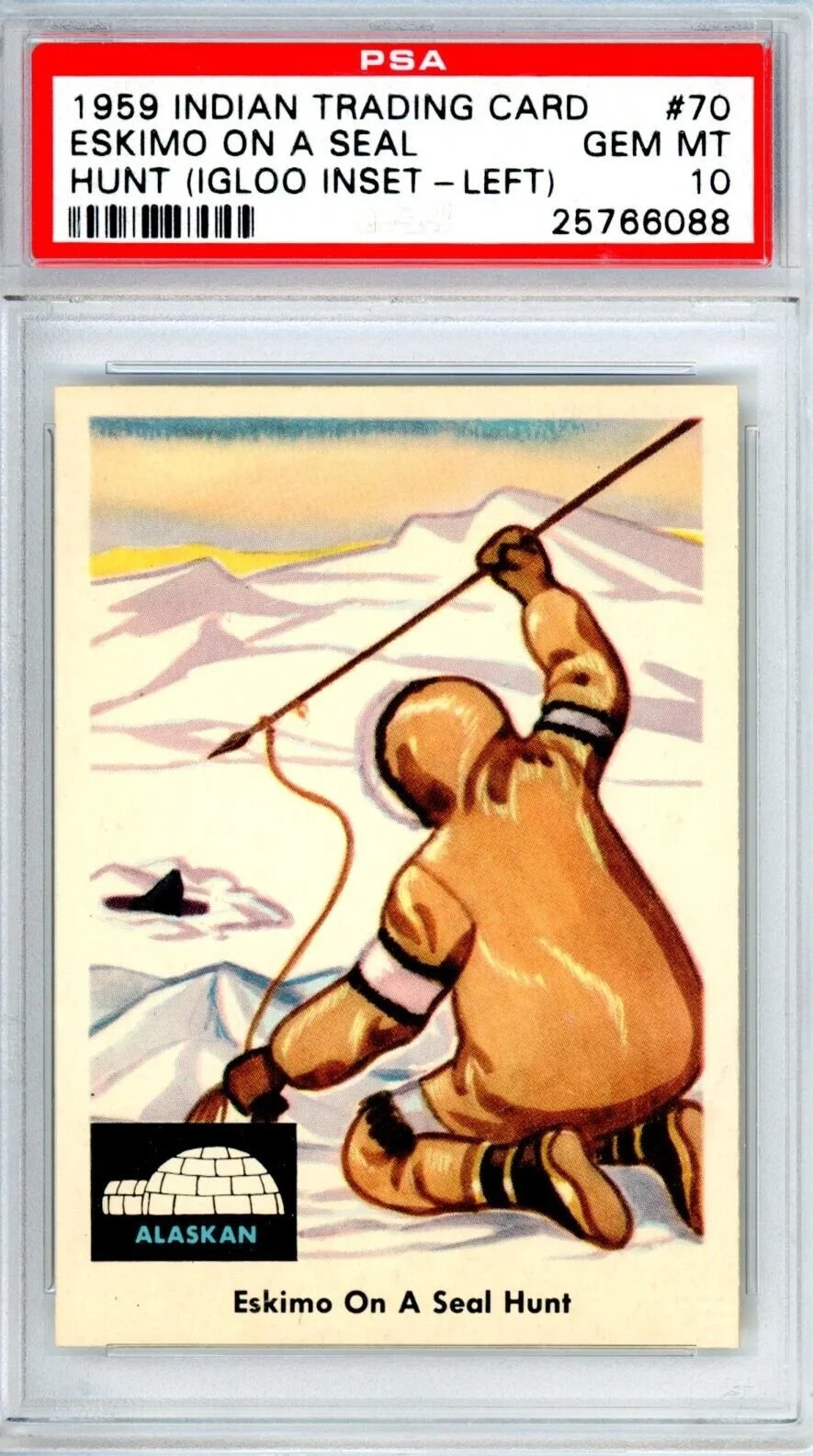 Shop › 1959 Indian Trading Card Eskimo on Seal Hunt Left 70 PSA 10 14068 Image 1 of 1 1959 Indian Trading Card Eskimo on Seal Hunt Left 70 PSA 10 14068 $124.00 Thousands of high grade PSA cards available New cards added weekly Always check KRISKEPPLERSPORTSCARDS Add To Cart Added! Thousands of high grade PSA cards available New cards added weekly Always check KRISKEPPLERSPORTSCARDS