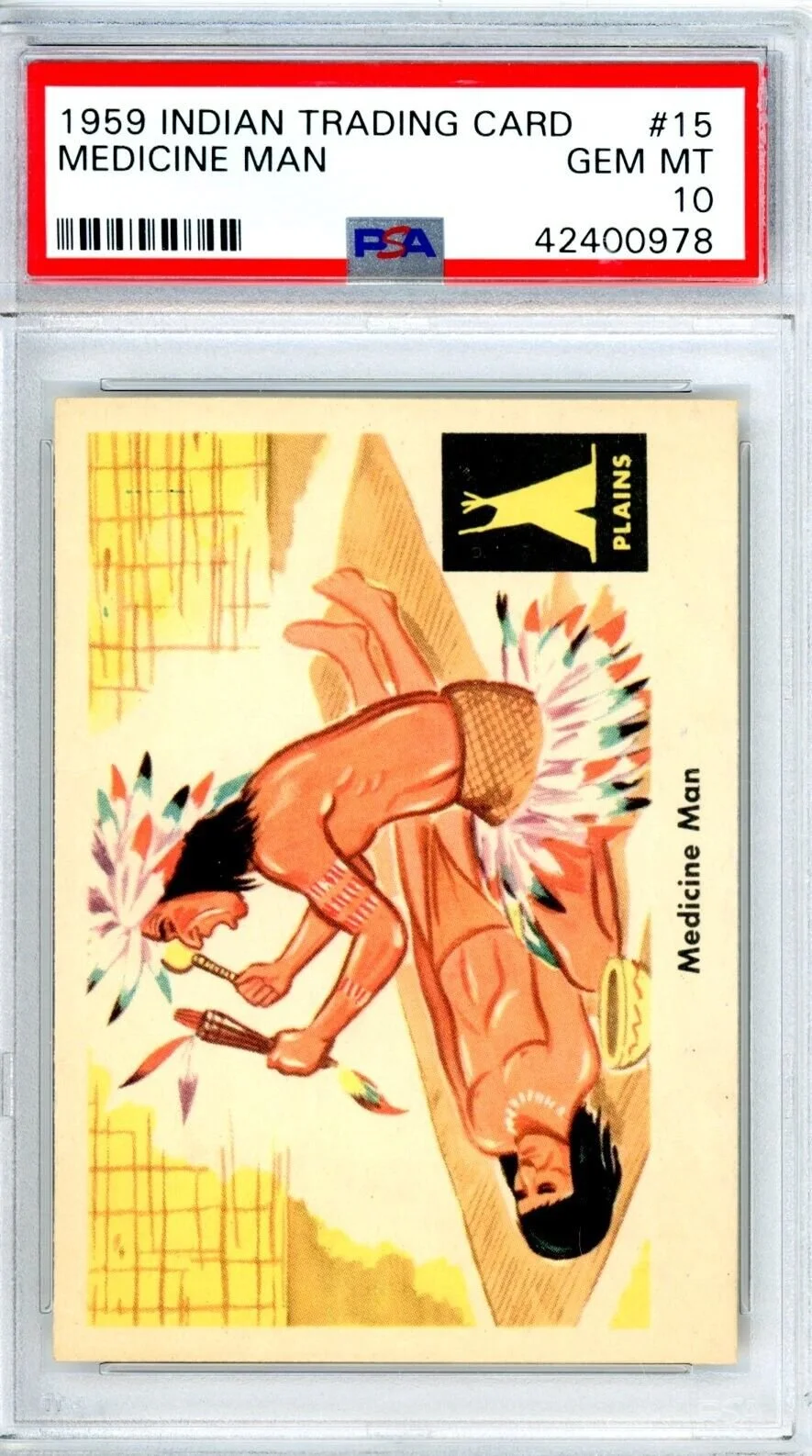 Shop › 1959 Indian Trading Card Medicine Man 15 PSA 10 14077 Image 1 of 1 1959 Indian Trading Card Medicine Man 15 PSA 10 14077 $124.00 Thousands of high grade PSA cards available New cards added weekly Always check KRISKEPPLERSPORTSCARDS Add To Cart Added! Thousands of high grade PSA cards available New cards added weekly Always check KRISKEPPLERSPORTSCARDS
