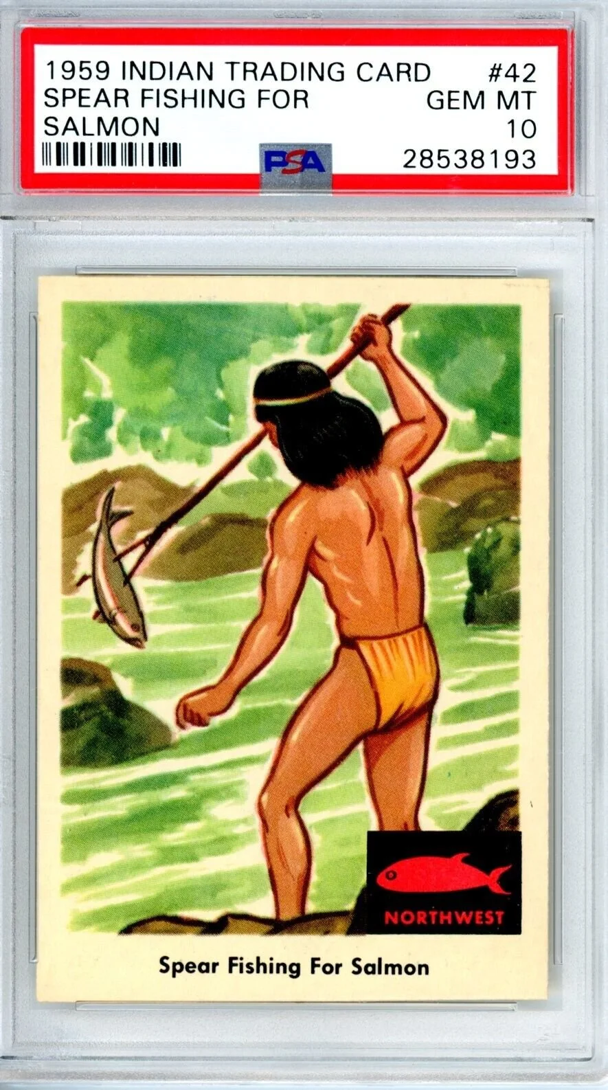 Shop › 1959 Indian Trading Card Spear Fishing 42 PSA 10 14075 Image 1 of 1 1959 Indian Trading Card Spear Fishing 42 PSA 10 14075 $173.00 Thousands of high grade PSA cards available New cards added weekly Always check KRISKEPPLERSPORTSCARDS Add To Cart Added! Thousands of high grade PSA cards available New cards added weekly Always check KRISKEPPLERSPORTSCARDS