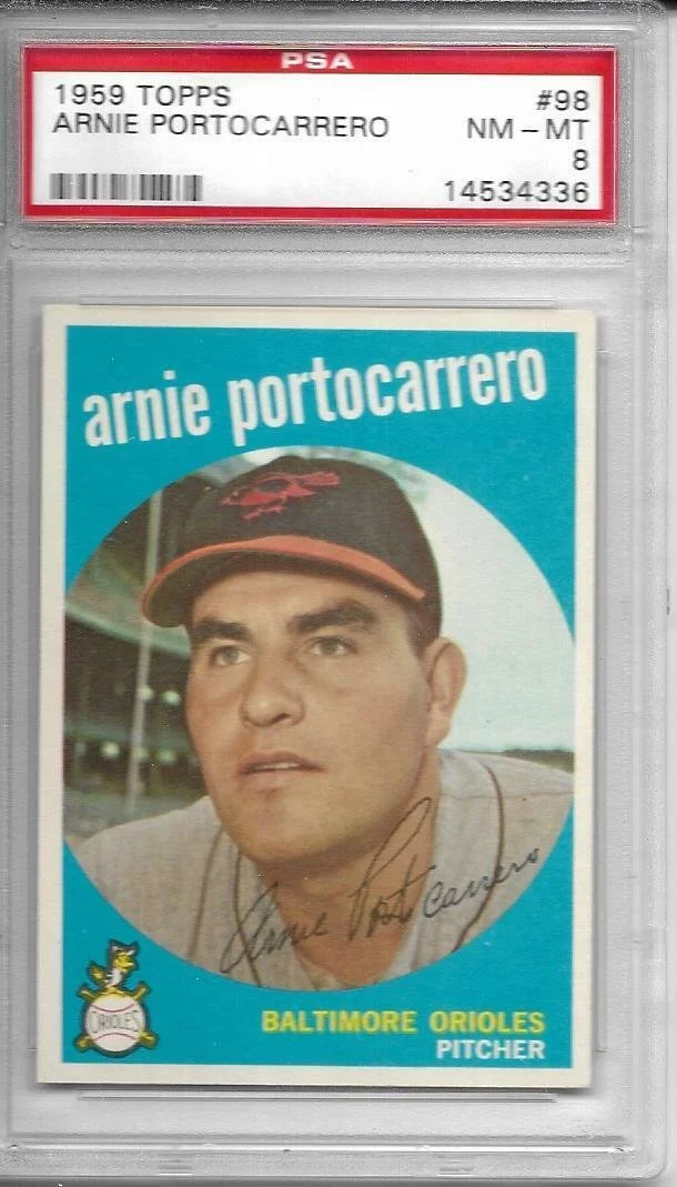 Shop › 1959 Topps Arnie Portocarrero 98 PSA 8 Orioles 1983 Image 1 of 1 1959 Topps Arnie Portocarrero 98 PSA 8 Orioles 1983 $30.00 Kriskepplersportscards Add To Cart Added! Kriskepplersportscards