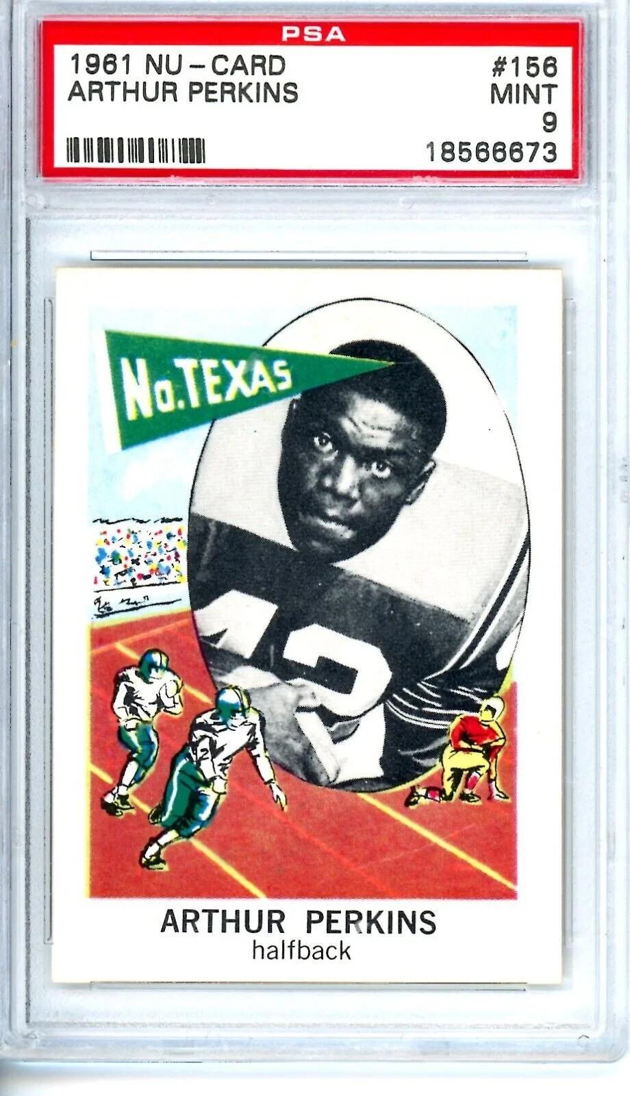 Shop › 1961 Nu-card Arthur Perkins #156 No Texas PSA 9 11048 Image 1 of 1 1961 Nu-card Arthur Perkins #156 No Texas PSA 9 11048 $18.00 Thousands of high grade PSA cards available New cards added weekly Always check KRISKEPPLERSPORTSCARDS Add To Cart Added! Thousands of high grade PSA cards available New cards added weekly Always check KRISKEPPLERSPORTSCARDS