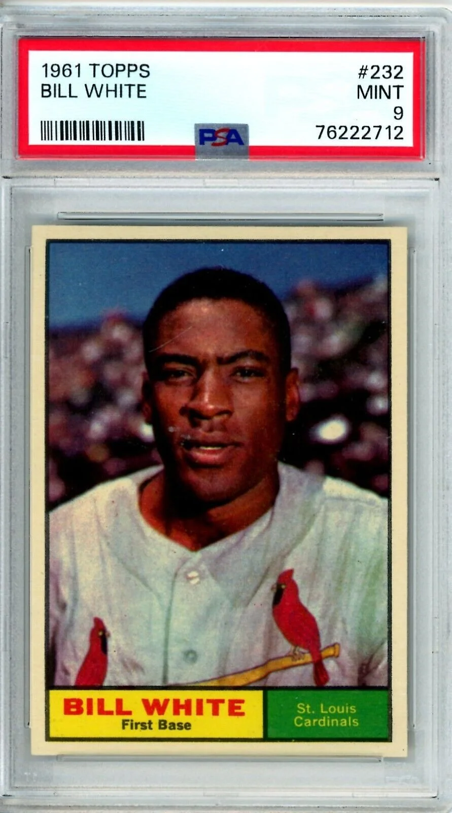Shop › 1961 Topps Bill White PSA 9 #232 Cardinals 12477 Image 1 of 1 1961 Topps Bill White PSA 9 #232 Cardinals 12477 $776.00 Thousands of high grade PSA cards available New cards added weekly Always check KRISKEPPLERSPORTSCARDS Add To Cart Added! Thousands of high grade PSA cards available New cards added weekly Always check KRISKEPPLERSPORTSCARDS
