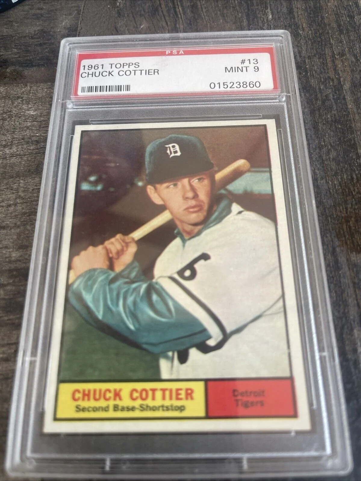 Shop › 1961 Topps Chuck Cottier #13 PSA 9 Tigers 12176 Image 1 of 1 1961 Topps Chuck Cottier #13 PSA 9 Tigers 12176 $73.00 1961 Topps Chuck Cottier #13 PSA 9 Tigers 12176. Condition is Graded. Shipped with USPS Ground Advantage. Add To Cart Added! 1961 Topps Chuck Cottier #13 PSA 9 Tigers 12176. Condition is Graded. Shipped with USPS Ground Advantage.