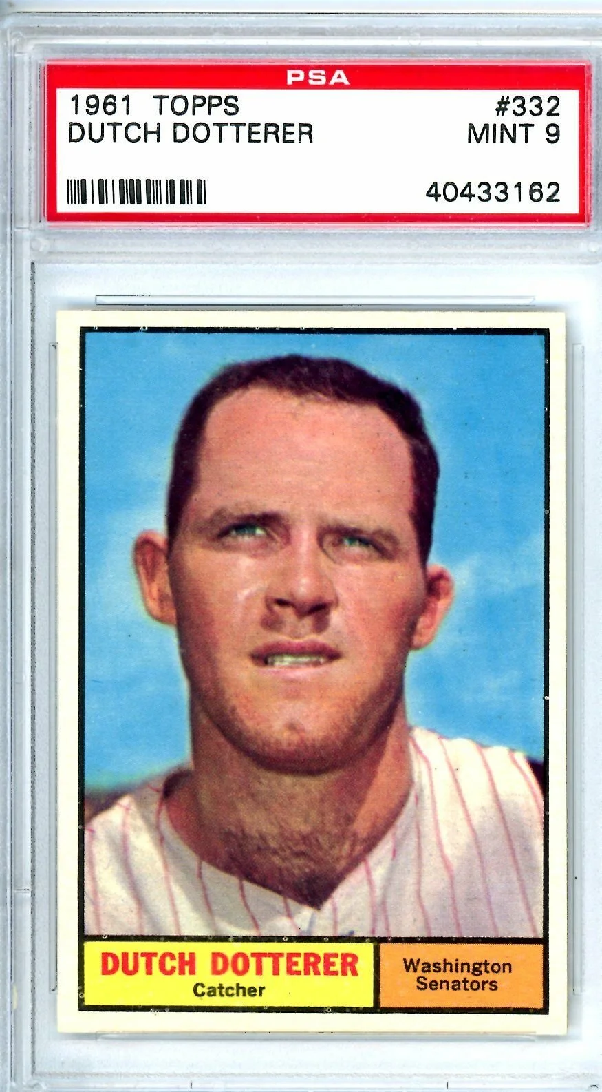 Shop › 1961 Topps Dutch Dotterer #332 PSA 9 Senators 10997 Image 1 of 1 1961 Topps Dutch Dotterer #332 PSA 9 Senators 10997 $93.10 Thousands of high grade PSA cards available New cards added weekly Always check KRISKEPPLERSPORTSCARDS Add To Cart Added! Thousands of high grade PSA cards available New cards added weekly Always check KRISKEPPLERSPORTSCARDS