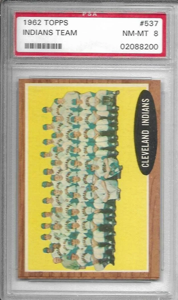 Shop › 1962 Topps Indians Team 537 PSA 8 Indians 2270 Image 1 of 1 1962 Topps Indians Team 537 PSA 8 Indians 2270 $48.00 Kriskepplersportscards Add To Cart Added! Kriskepplersportscards