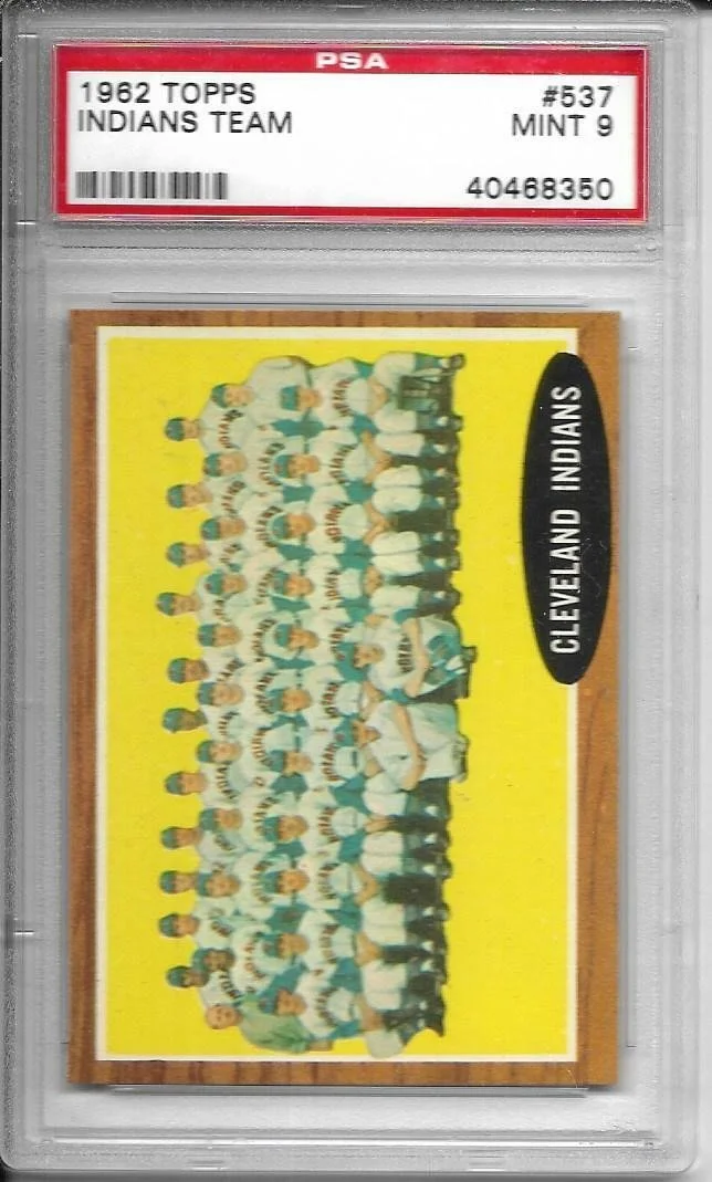 Shop › 1962 Topps Indians Team 537 PSA 9 Indians 2267 Image 1 of 1 1962 Topps Indians Team 537 PSA 9 Indians 2267 $245.00 Kriskepplersportscards Add To Cart Added! Kriskepplersportscards