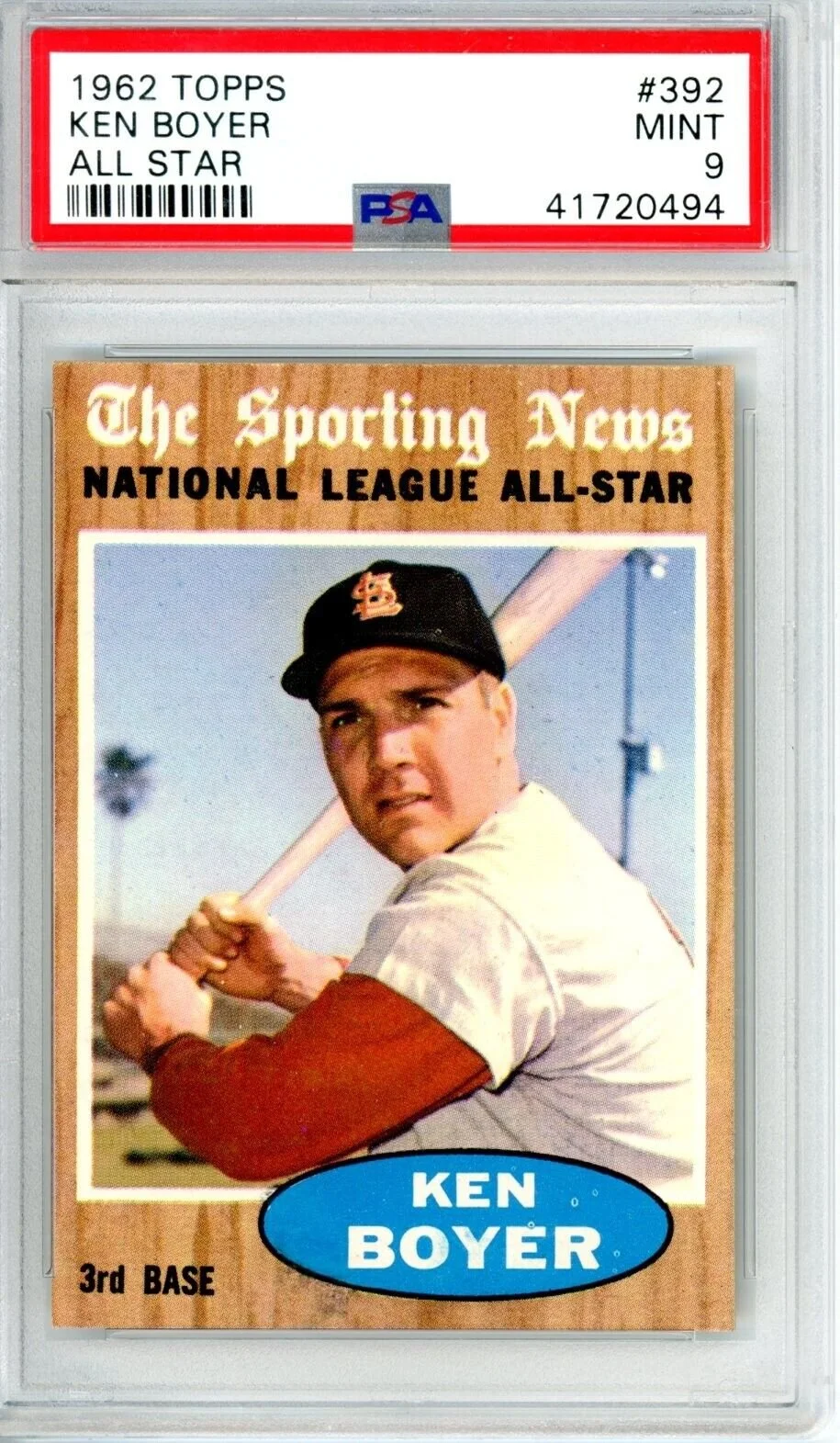 Shop › 1962 Topps Ken Boyer AS 392 PSA 9 Cardinals 11737 Image 1 of 1 1962 Topps Ken Boyer AS 392 PSA 9 Cardinals 11737 $538.00 Thousands of high grade PSA cards available New cards added weekly Always check KRISKEPPLERSPORTSCARDS Add To Cart Added! Thousands of high grade PSA cards available New cards added weekly Always check KRISKEPPLERSPORTSCARDS